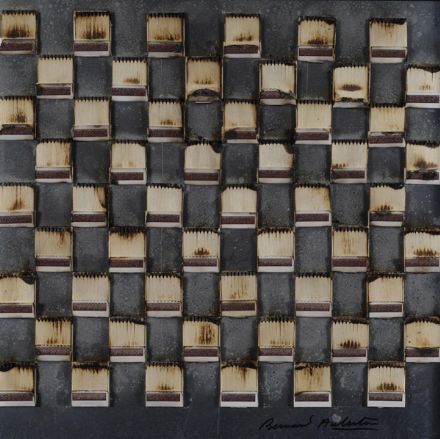 Bernard Aubertin (Buolay, 1952) Senza titolo Fiammiferi bruciati su lamiera, cm. 50x50 Firma in basso a sinistra.Autentica dell'autore su foto.