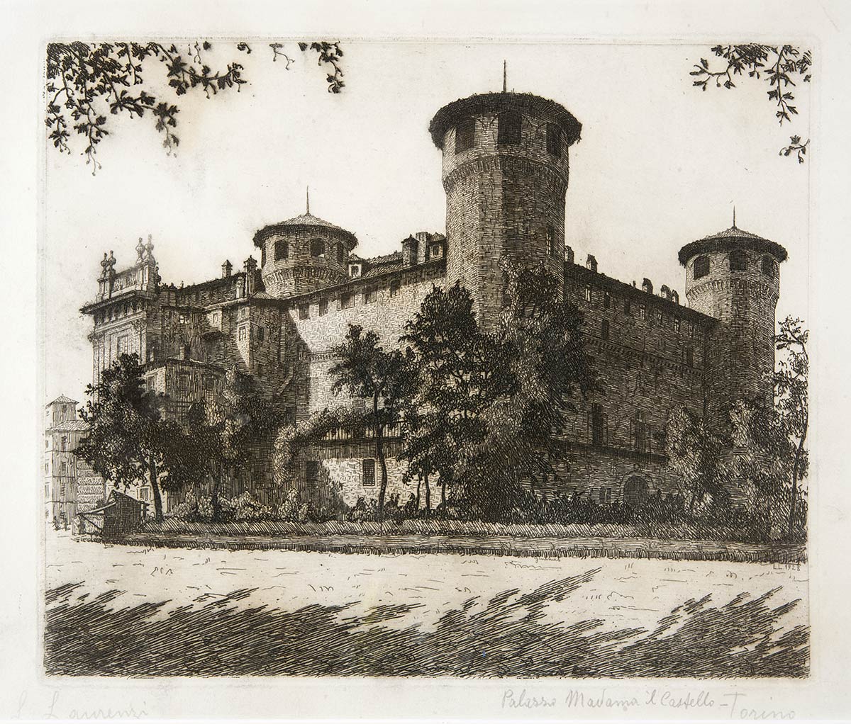 firmata in basso a sinistra: L. Laurenzi; titolo in basso a destra: Palazzo Madama il Castello - Torino