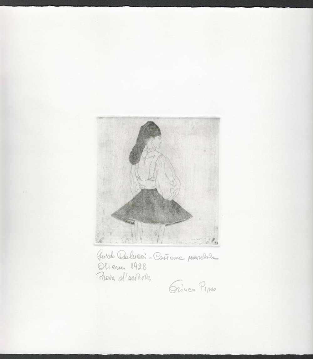 dalla corpus di 43 acqueforti eseguiti dal artista dopo il viaggio in Sardegna nel 1928. Questo esemplare è uno dei 90 tirati nel 2007, dopo di che la lastra è stata punzonata. Titolo e firma del editore, Enrico Piras.
