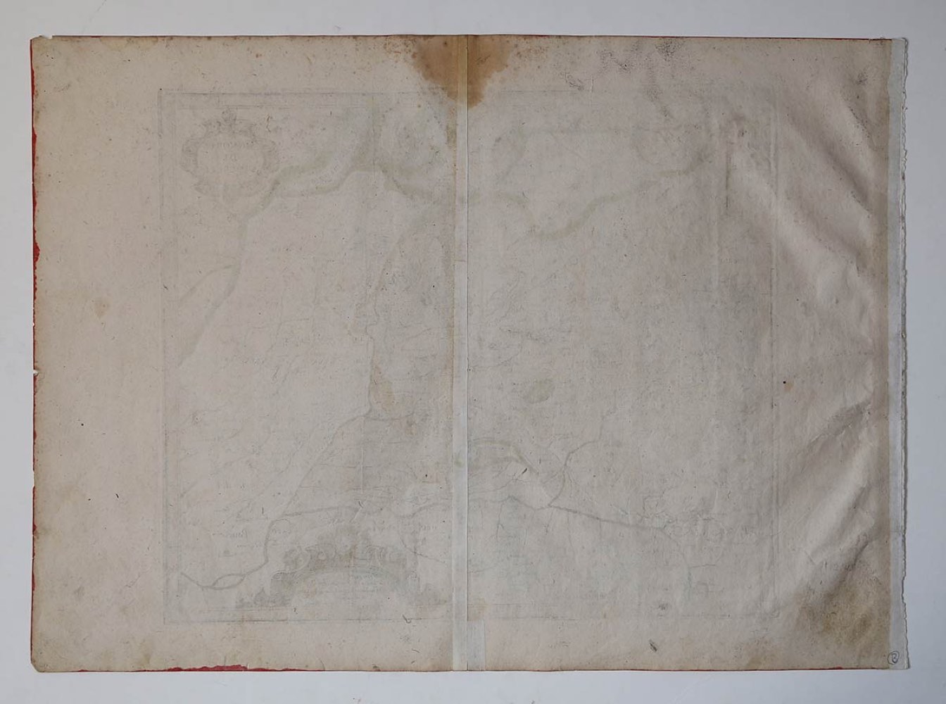 Due cartigli figurati: fresca e nitida impressione, buona conservazione con una leggera macchia nella zona superiore e confini colorati.