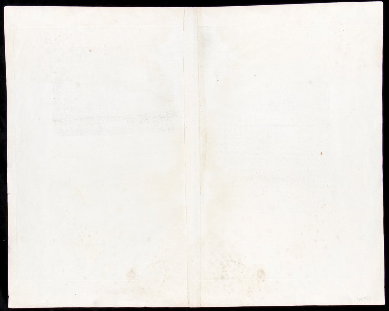 Due fogli uniti, con consueta piega centrale. Breve strappo sulla piega nella parte bassa. Lieve sgualciatura e leggere macchie di umidità al centro in basso.