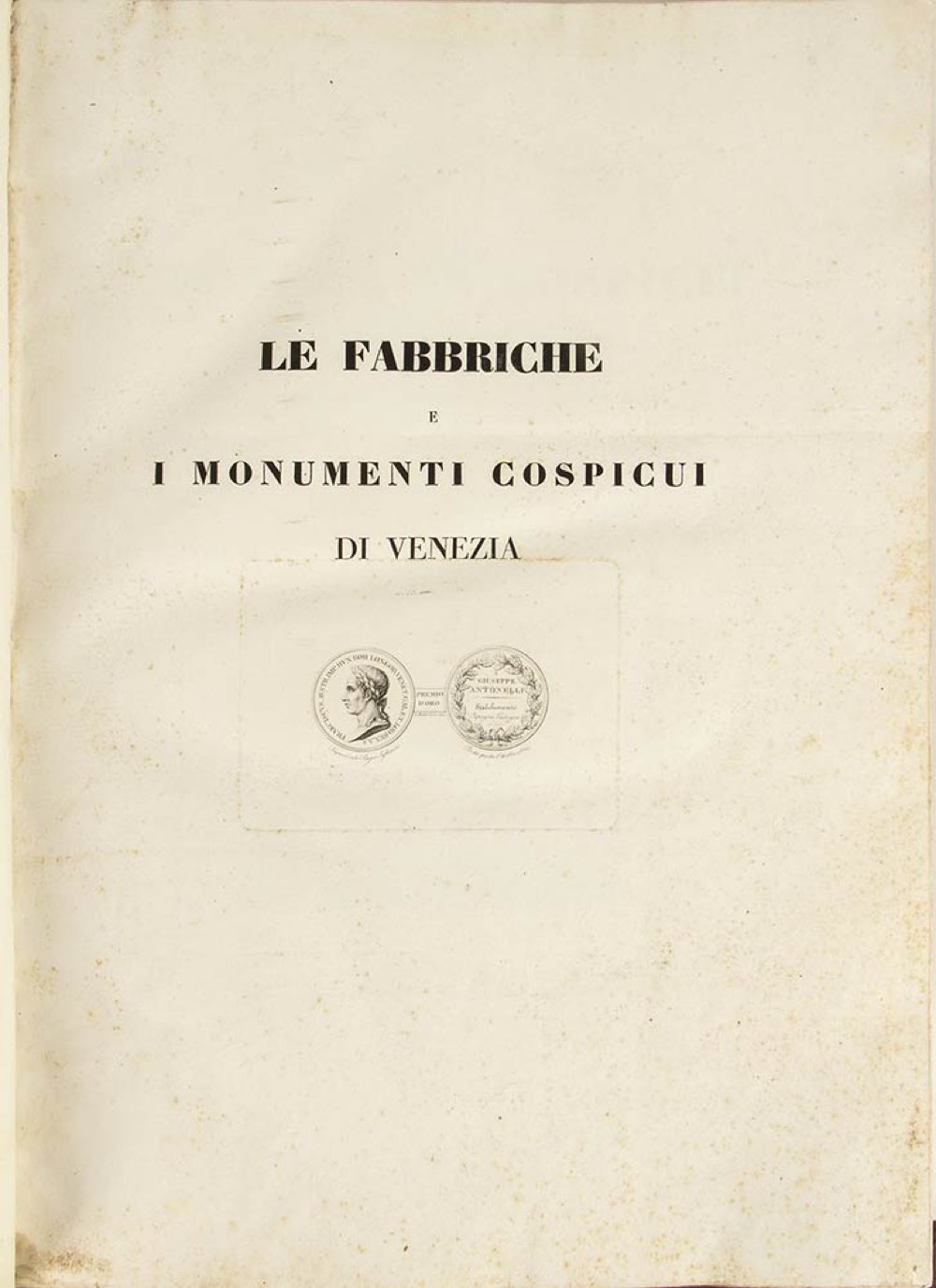 LE FABBRICHE E I MONUMENTI COSPICUI DI VENEZIA, ..., VENZIA: CO' TIPI DI GIUSEPPE ANTONELLI EDITORE, PREMIATO DELLA MEDAGLIA D'ORO 1838.
