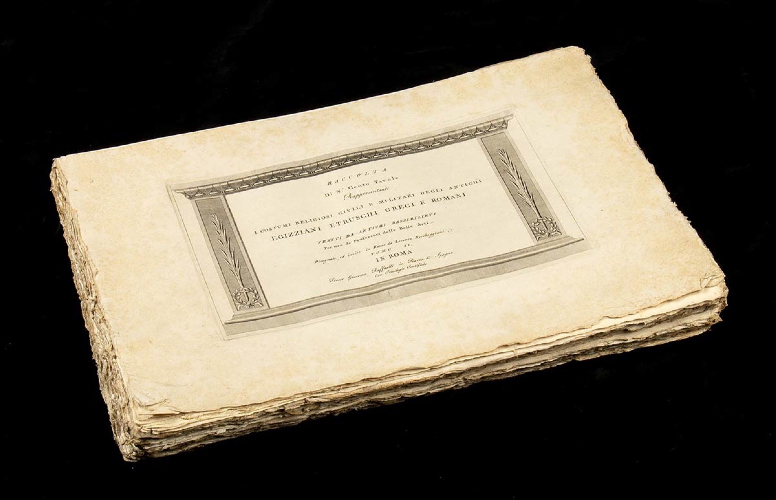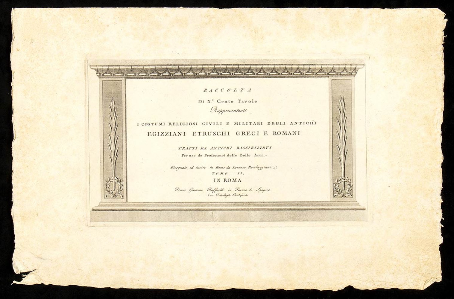 Lorenzo Roccheggiani (fl. 1788-1817): RACCOLTA DI N°. CENTO TAVOLE RAPPRESENTANTI COSTUMI RELIGIOSI CIVILI, E MILITARI DEGLI ANTICHI EGIZIANI, ETRUSCHI, GRECI E ROMANI TRATTI DAGLI ANTICHI BASSIRILIEVI…, TOMO II, IN ROMA, 1804
