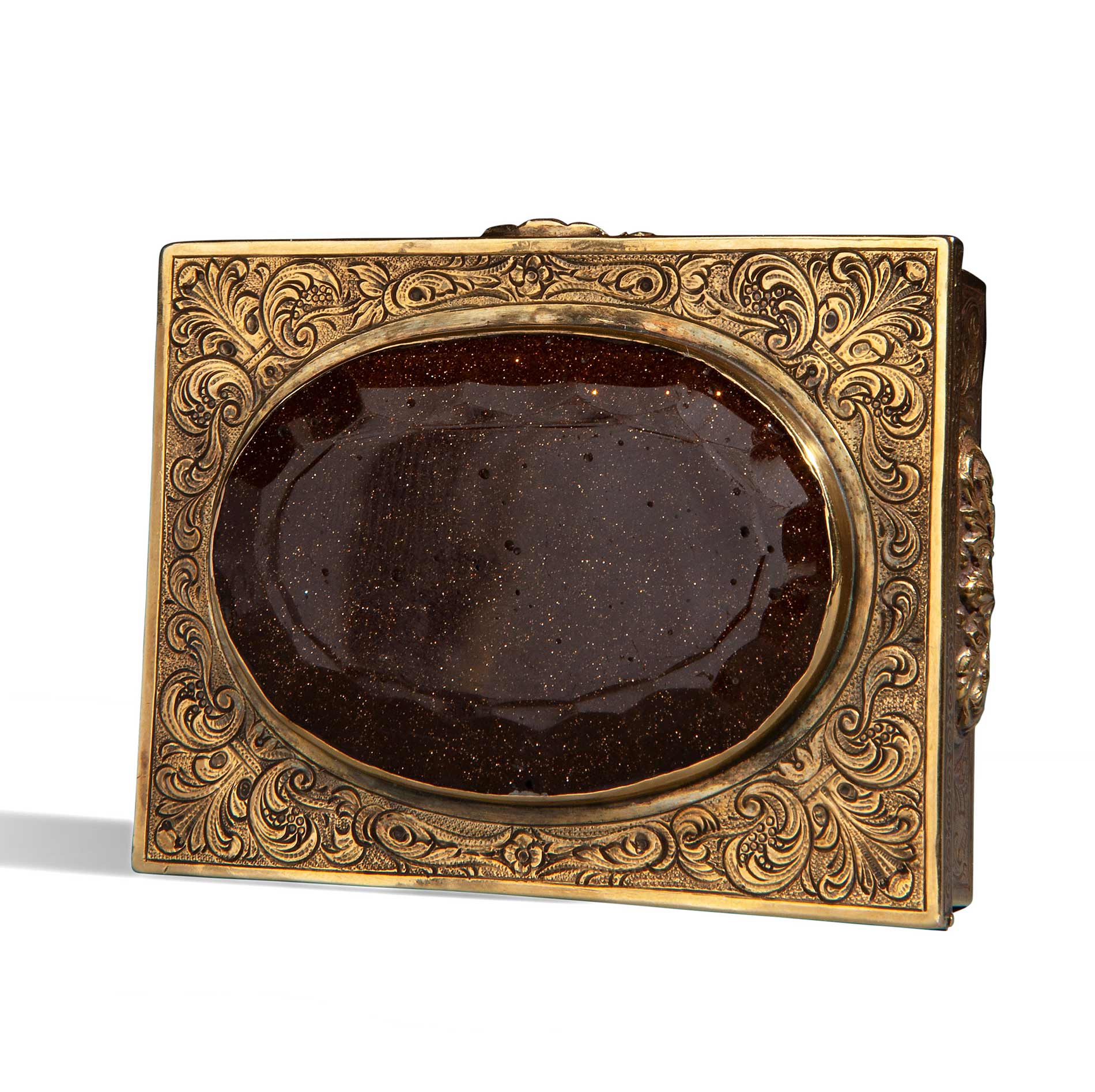 Scatola in oro e avventurina, XIX secolo Manifattura romana, oro 18 kti, peso complessivo gr. 126 Larghezza cm. 7,4