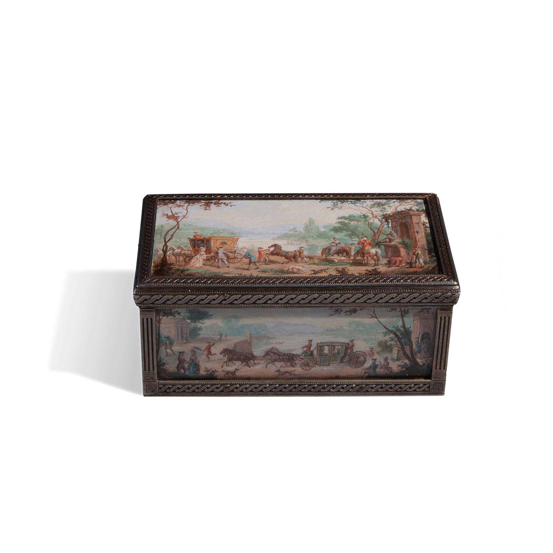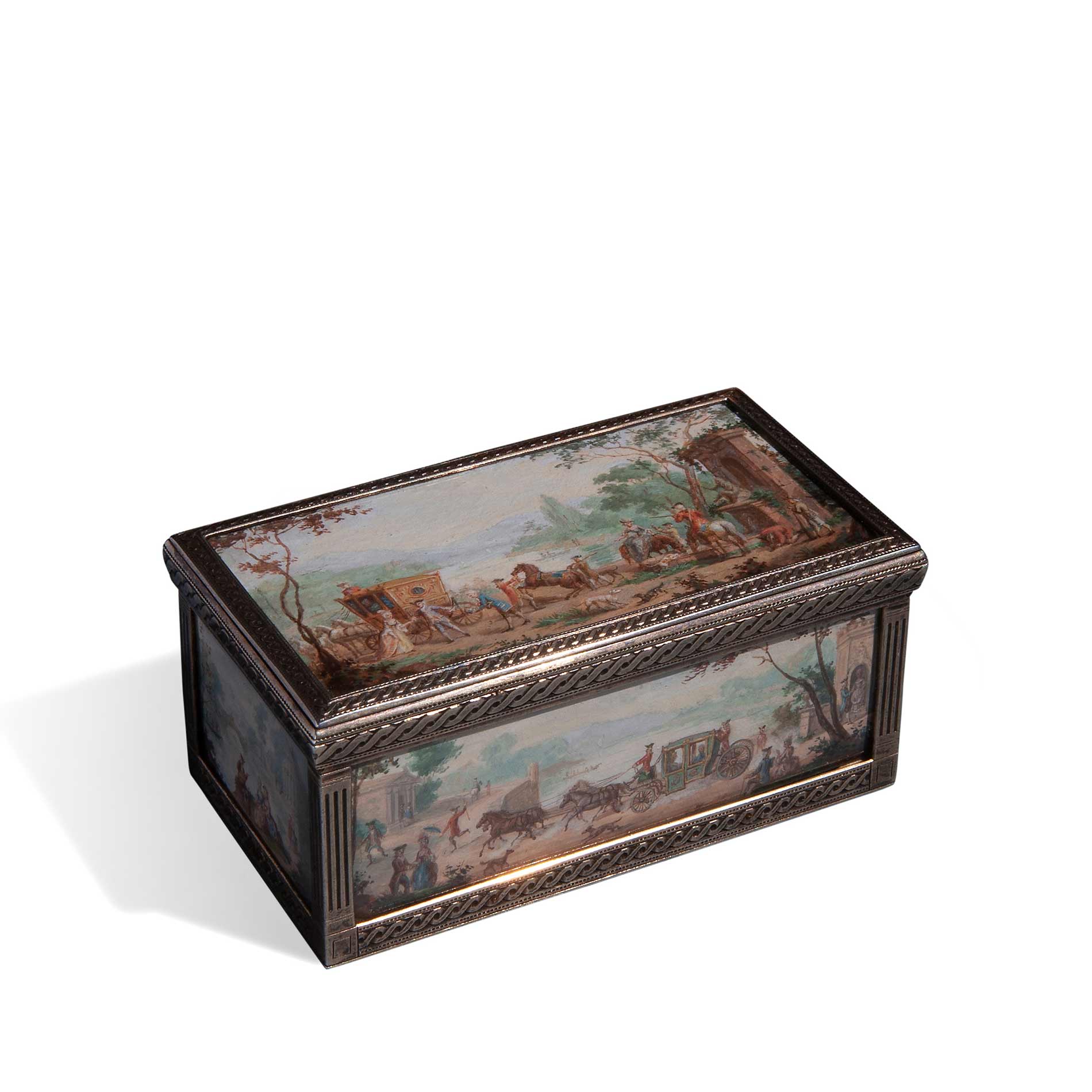 Elegante scatola composta da montatura in agento e argento dorato con ricche miniature