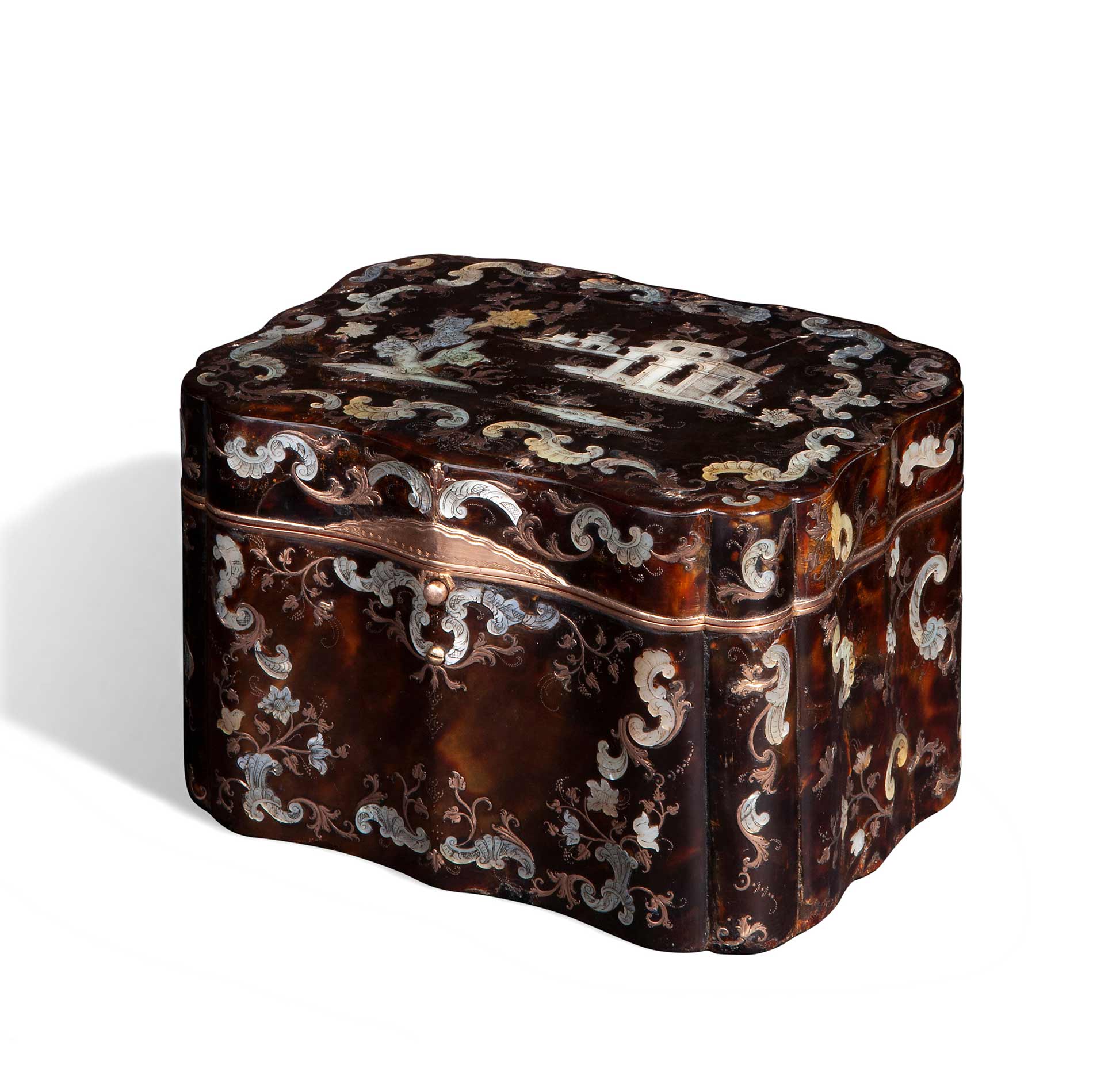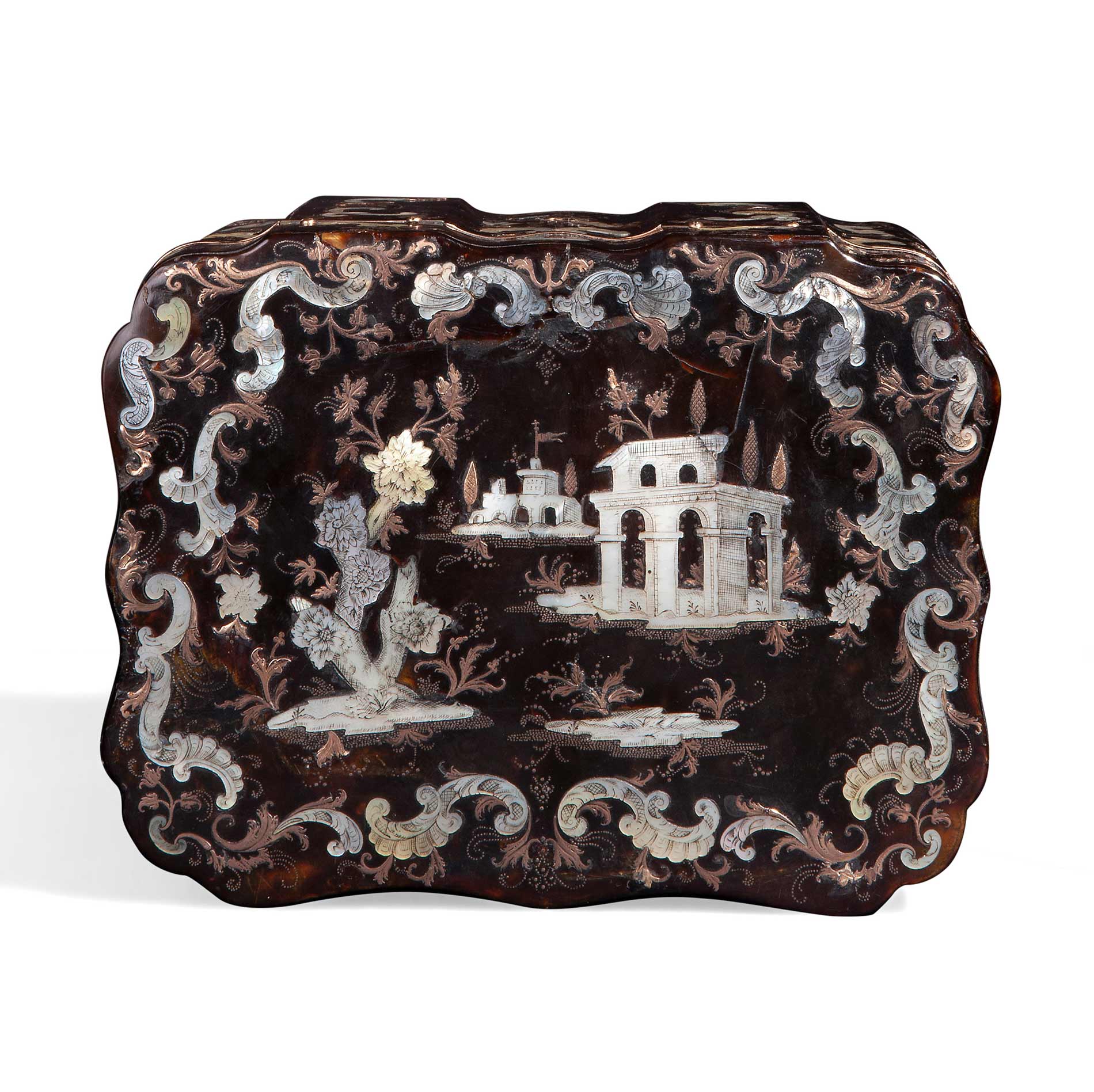 Rara scatola in tartaruga intarsiata in oro rosa e madreperla, Sarao circa 1740