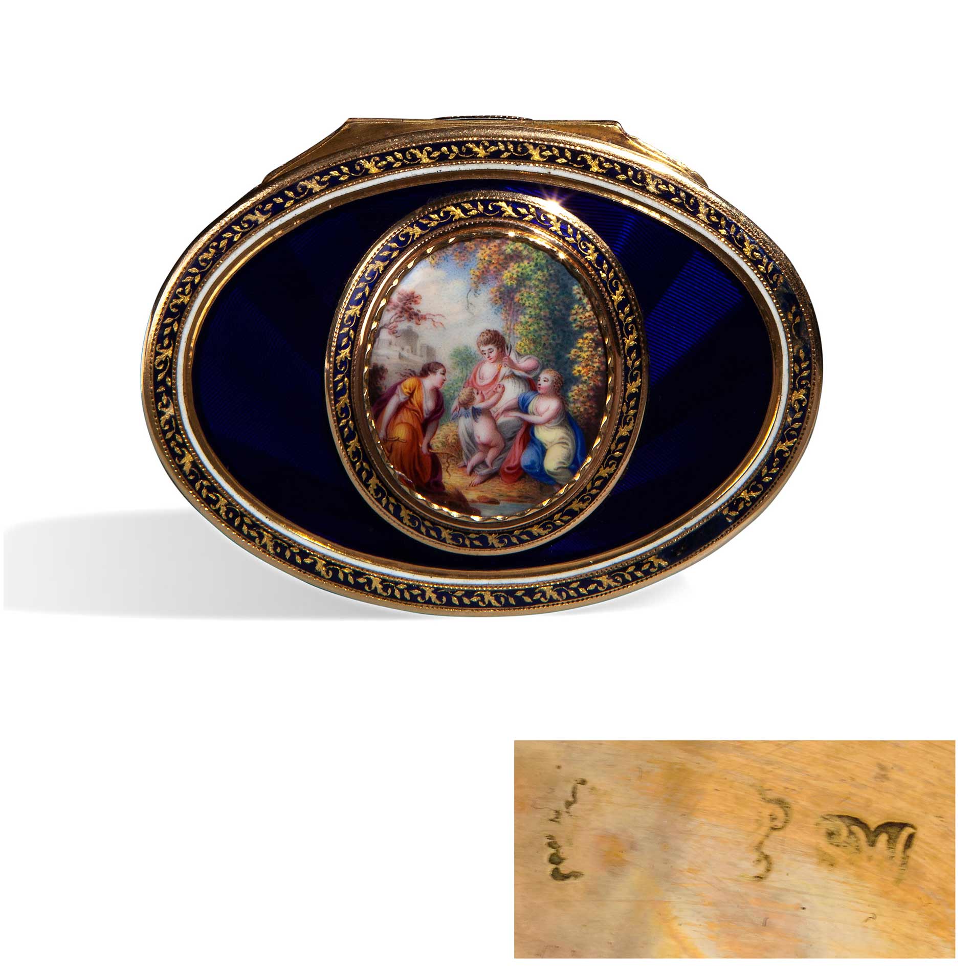 Lotto 110 | Scatola ovale in oro, smalti e miniatura, terzo quarto del XVIII secolo