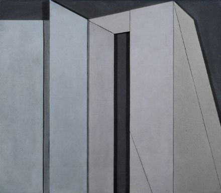 Giuseppe Uncini (Fabriano, 1929 - Trevi, 2008) Dimore n. 6, 1981 Cemento dipinto su tavola, cm. 80x93 Firma, data, titolo e dedica sul verso.