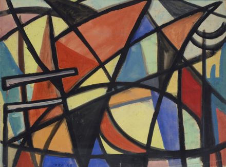 Saro Mirabella (Catania, 1914 - 1972) Composizione astratta, 1948 Tecnica mista su cartone, cm.40x60 Firma e data in basso al centro.