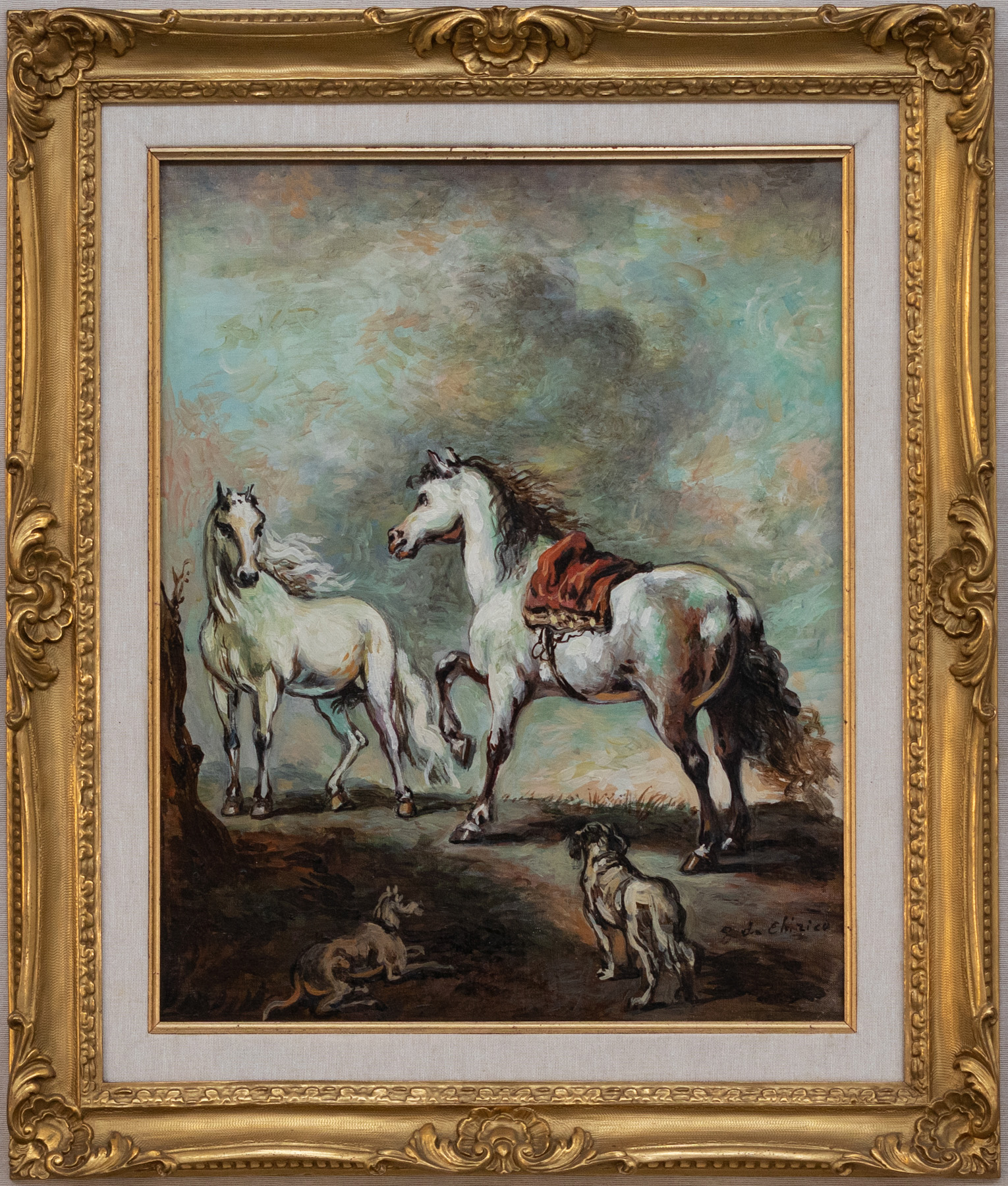 GIORGIO DE CHIRICO Cavalli con cani, seconda metà anni '50