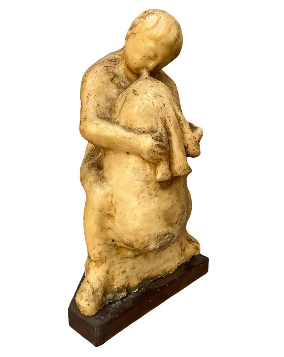 Manzù Giacomo Manzoni (Bergamo 1908-Aprilia 1991) - Scultura in cera raffigurante soggetto agreste con zampogna 36x22 cm base in legno.