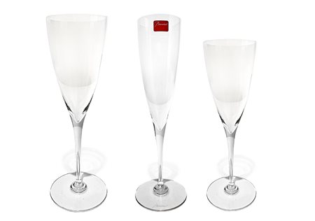 Composto da 24 flute: 8 flute champagne, 8 acqua, 8 vino .