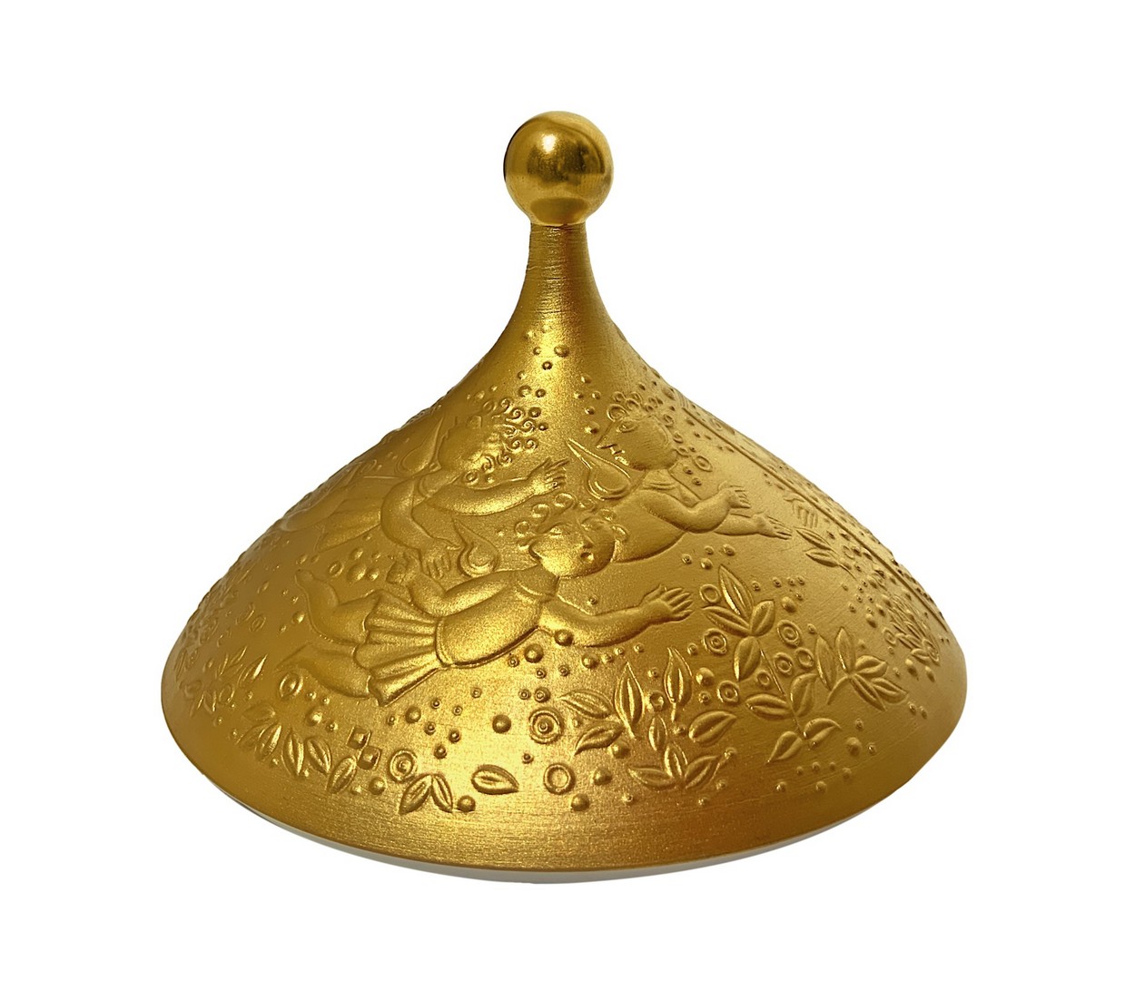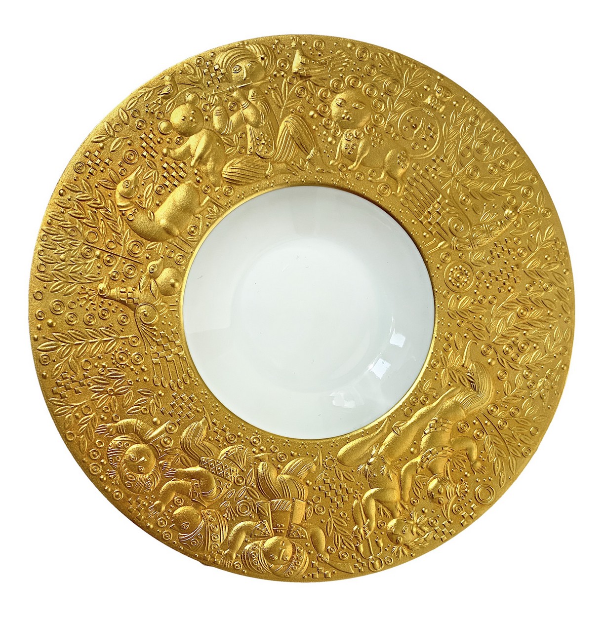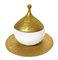 Rosenthal (1879) - Rosenthal, Zauberflöte, zuccheriera ”Il flauto magico” h zuccheriera 15, b piattino 19 cm piattino in porcellana bianca con rivestimento prezioso in oro. piattino in porcellana bianca con rivestimento prezioso in oro. Questo lotto è soggetto a diritto di seguito