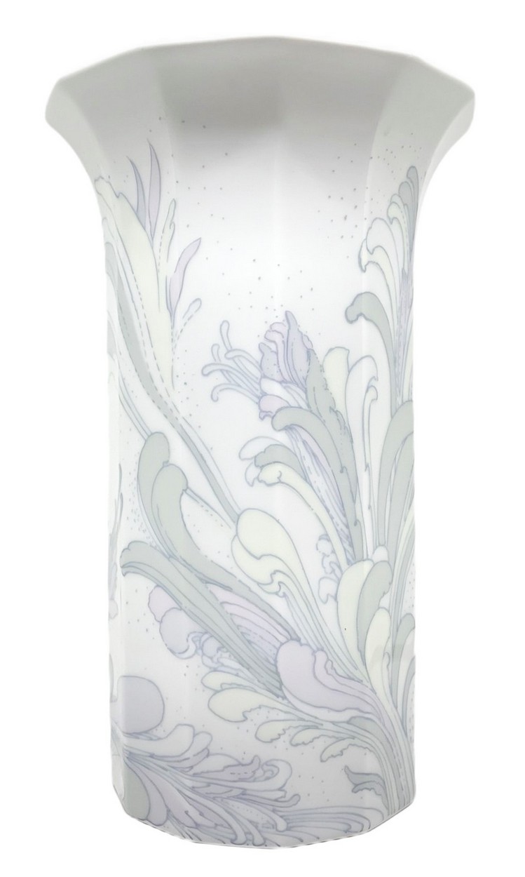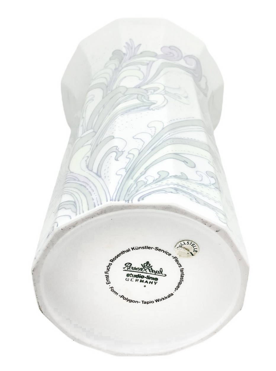 Tapio Wirkkala (Hanko 1915-Helsinki 1985) - Vaso Rosenthal H cm 22 modello Polygon, in porcellana bianca decorata “fleurs fantastiques”.modello Polygon, in porcellana bianca decorata “fleurs fantastiques”.