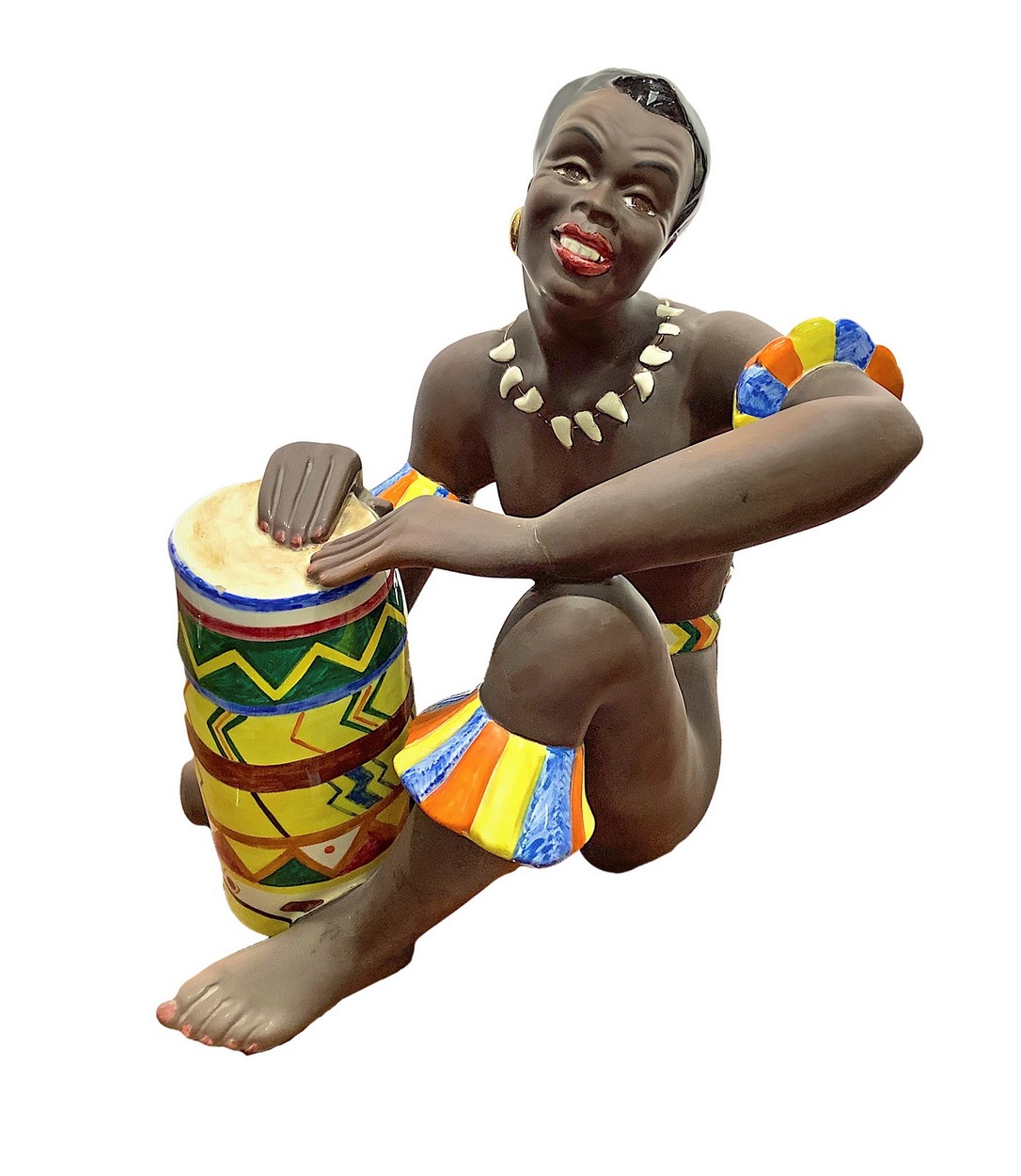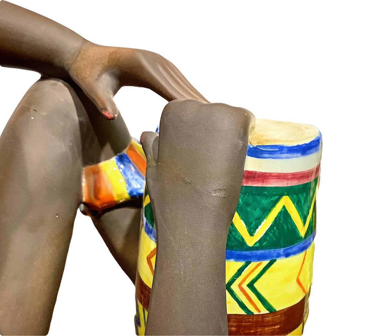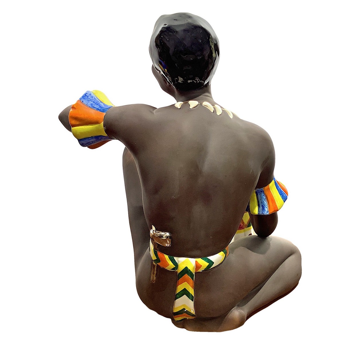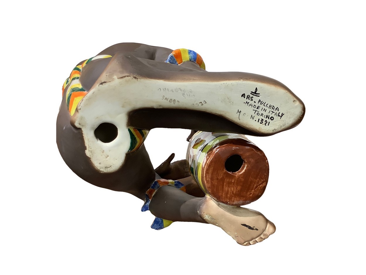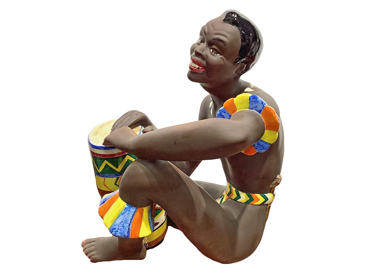 Ceramica raffigurante indigeno suonatore di bongo Filato alle mani, Ars Pulchra TorinoFilato alle mani, Ars Pulchra Torino