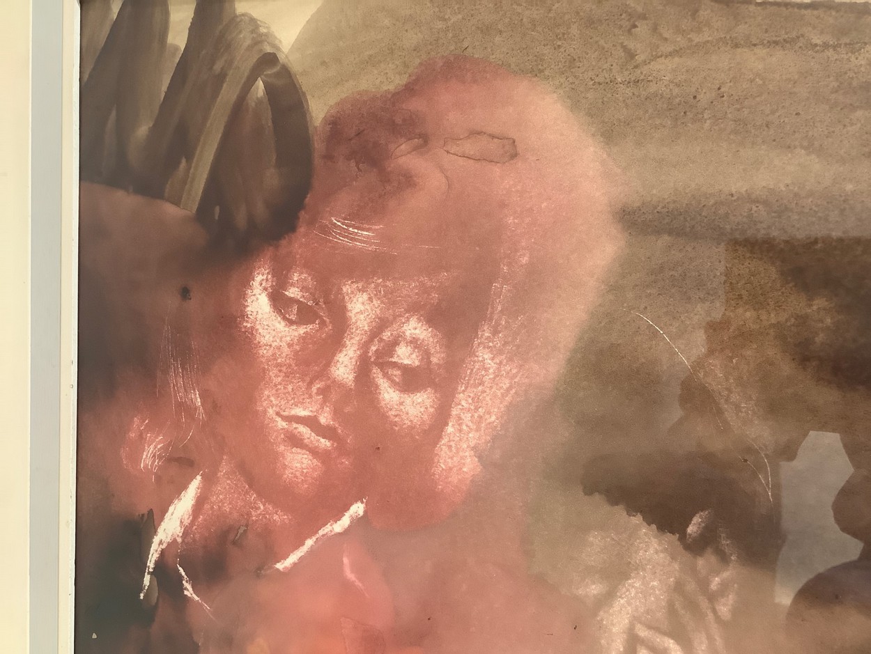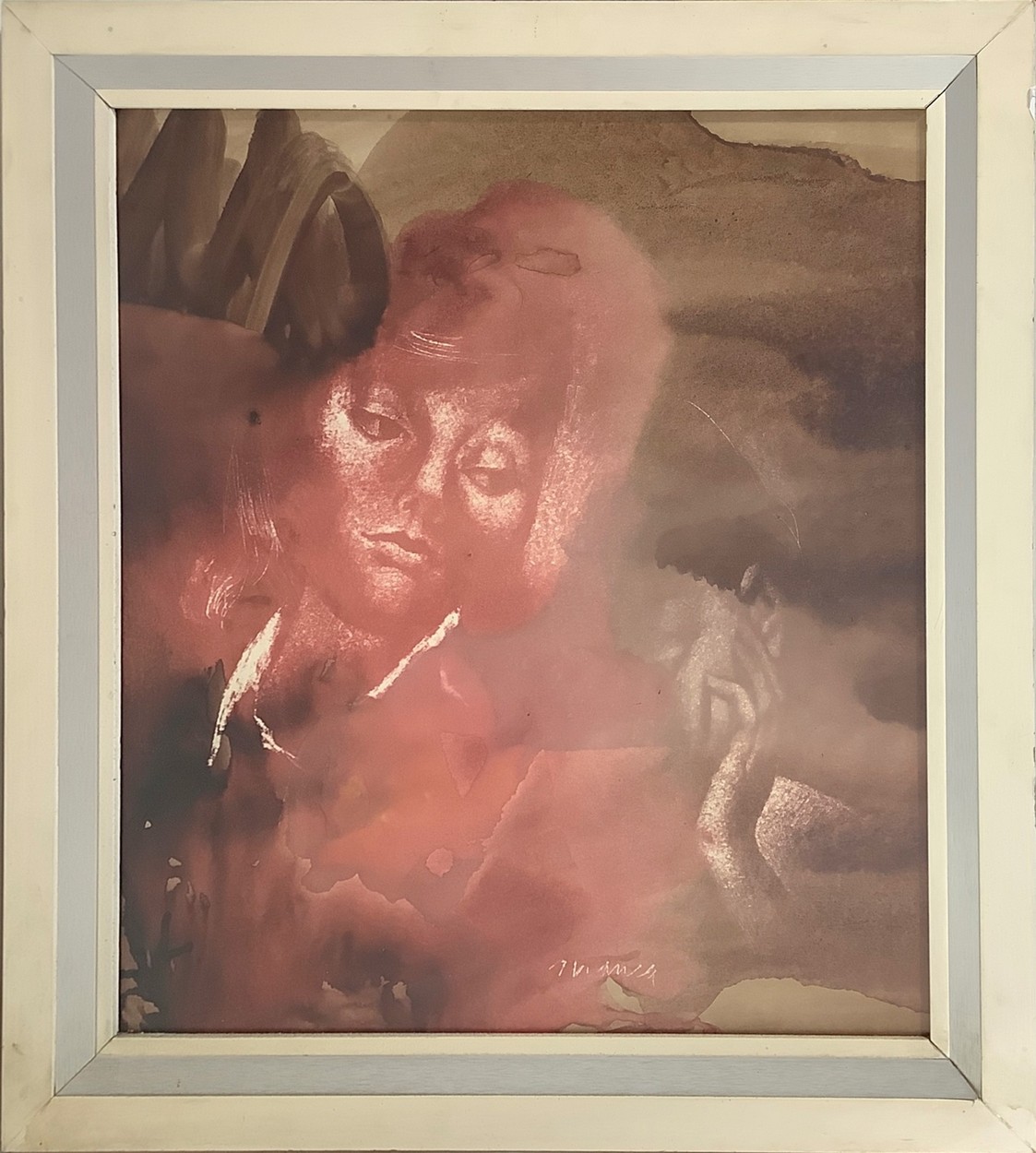 Pietro Antonio Manca (Sorso 1892-Sassari 1975) - Primo piano di un volto b 53x h57 cm, in cornice 63x66, 5 cm Acquerello su cartoncino