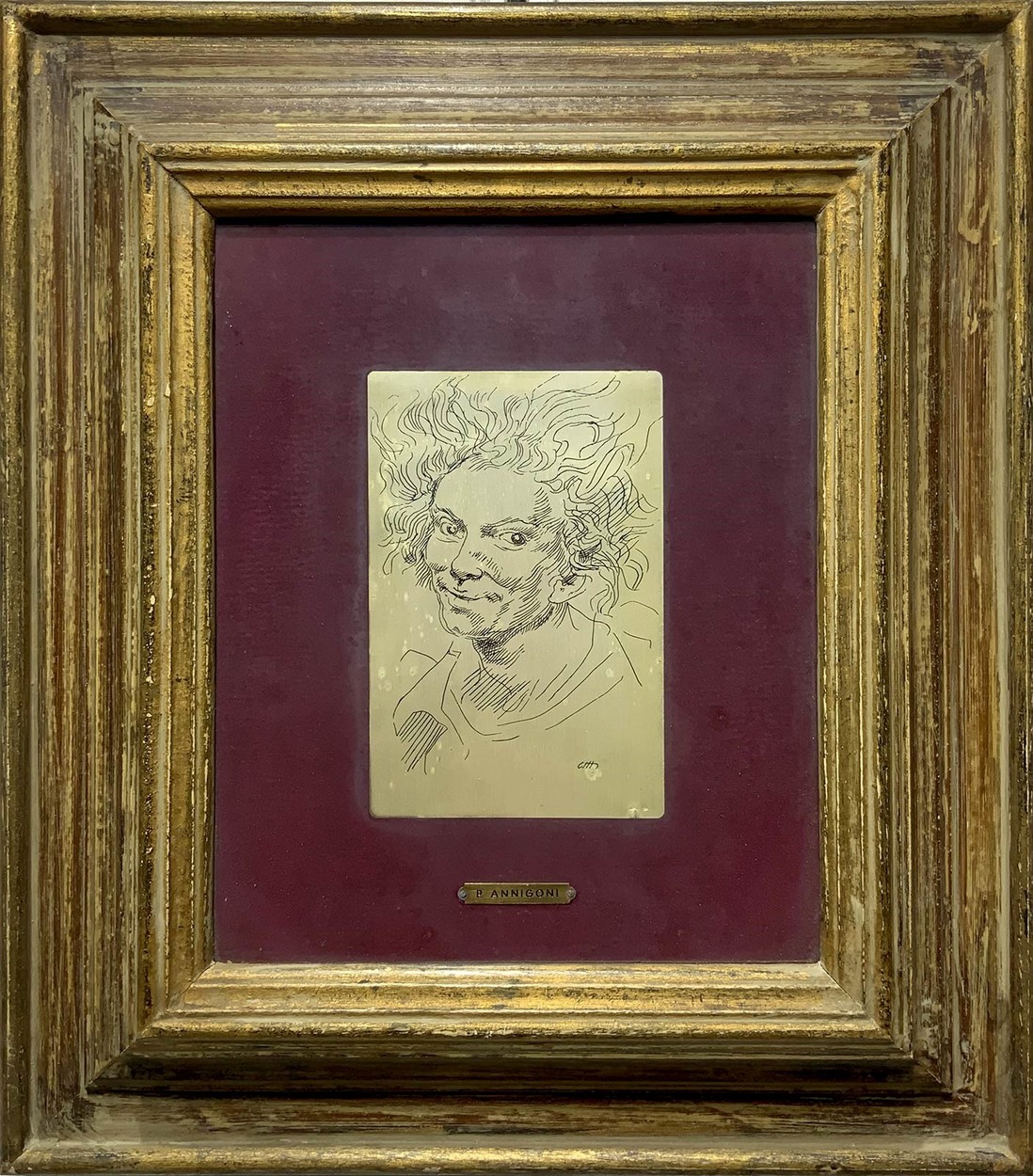 Pietro Annigoni (Milano 1910-Firenze 1988) - "Elogio della follia" di Erasmo da Rotterdam 12x19 cm, in cornice 51x45 cm In bella cornice di legno doratoIn bella cornice di legno dorato