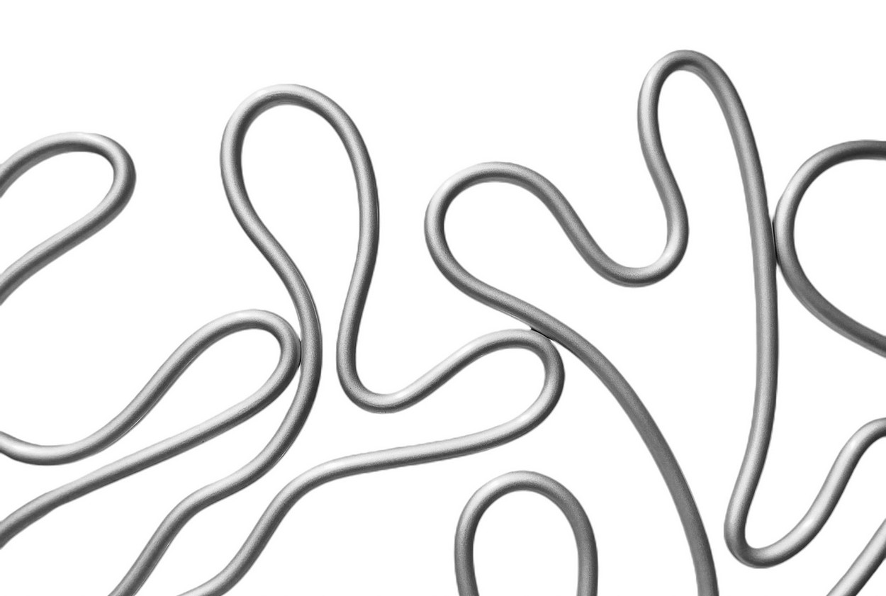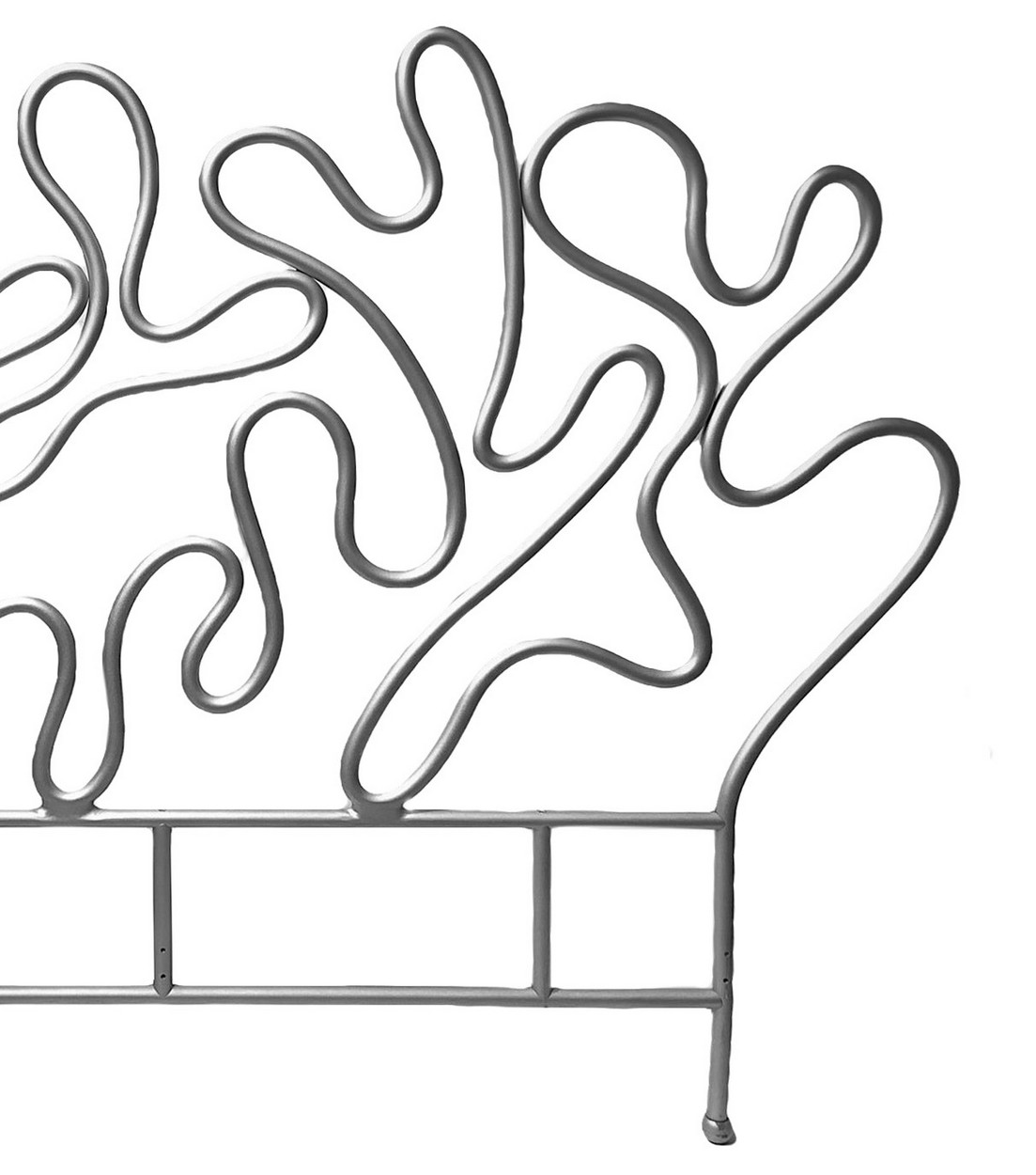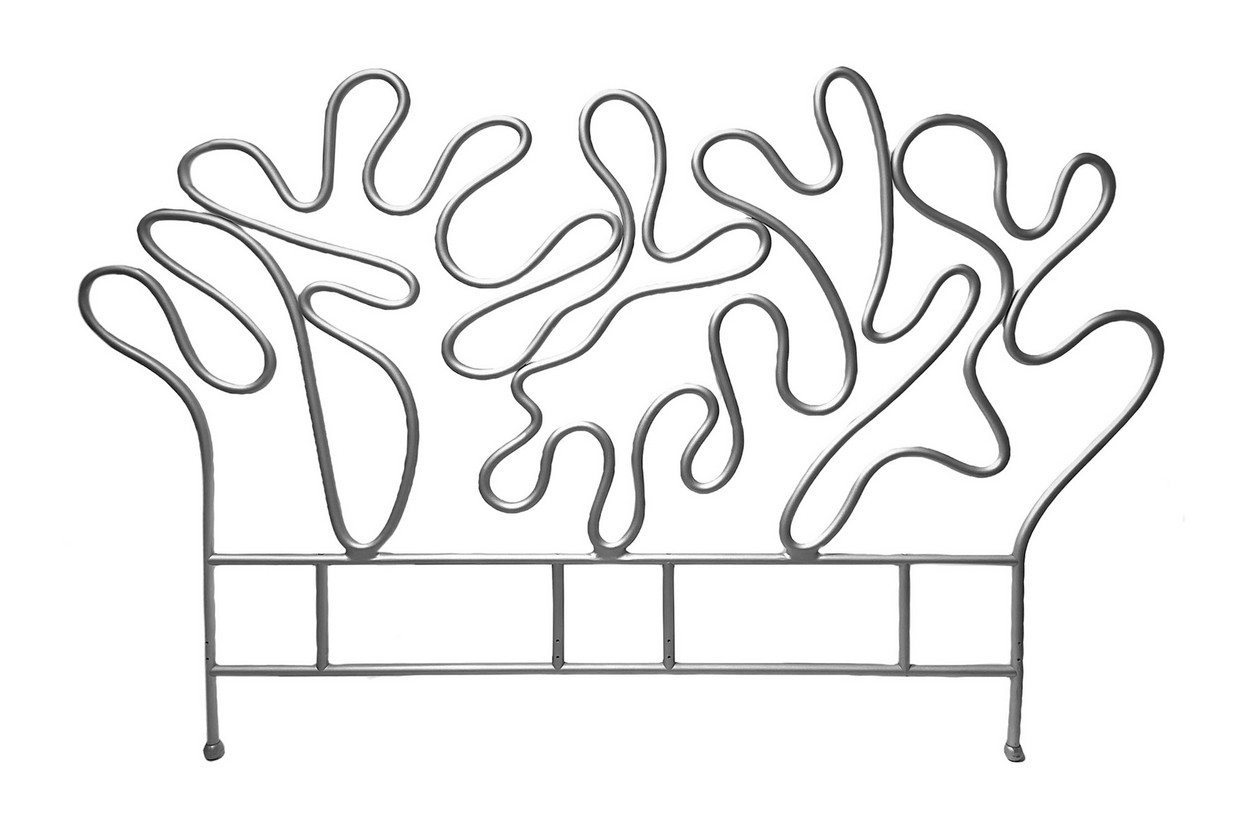 Testata da letto in metallo tubolare anodizzato argentato, Italy H cm 133. Larghezza cm 185 curvato a motivo informale, produzione italianacurvato a motivo informale, produzione italiana