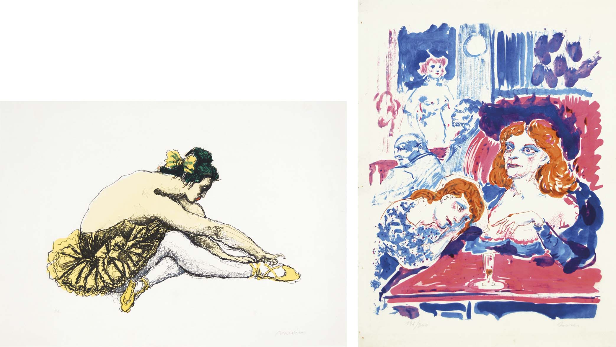 MESSINA F. - SASSU A. Ballerina - Donne al bar lotto di 2 litografie es. p.a....