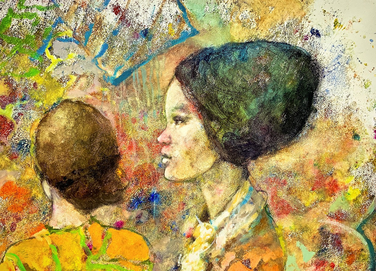 Donne , 20th century Cm 60x50 Dipinto a olio su tela Firmato in basso a destra Giorgi 85, Opera priva di cornice.