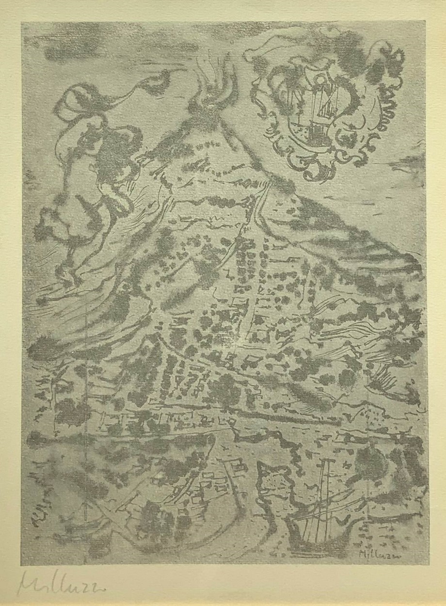 Sebastiano Milluzzo (Catania 1915-Catania 2011) - Etna su Catania 34 x24 cm. In cornice 48x38 cm Stampa Questo lotto è soggetto a diritto di seguito