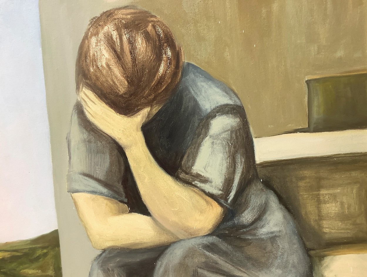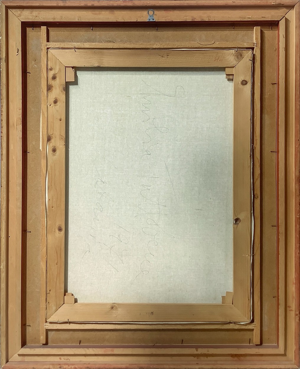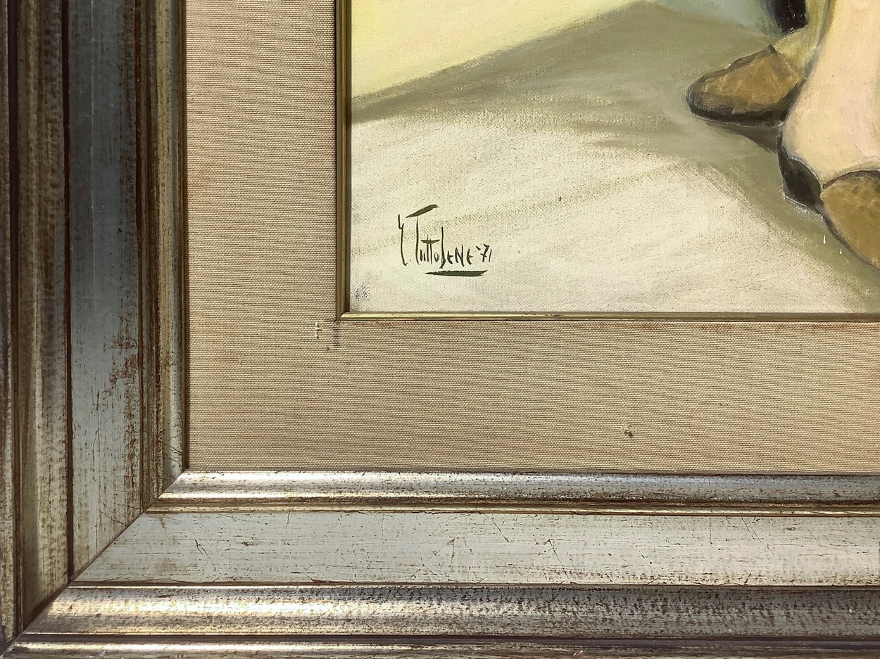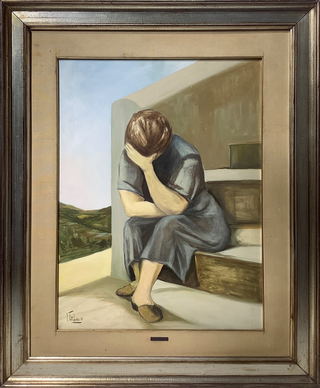 Emilia Centorbi Tuttobene (Catania 1915-Acitrezza 2003) - Donna seduta sulle scale, 20th century h 80x60 cm, in cornice 108x88 cm Dipinto ad olio su tela firmato in basso a sinistra "Tuttobene".