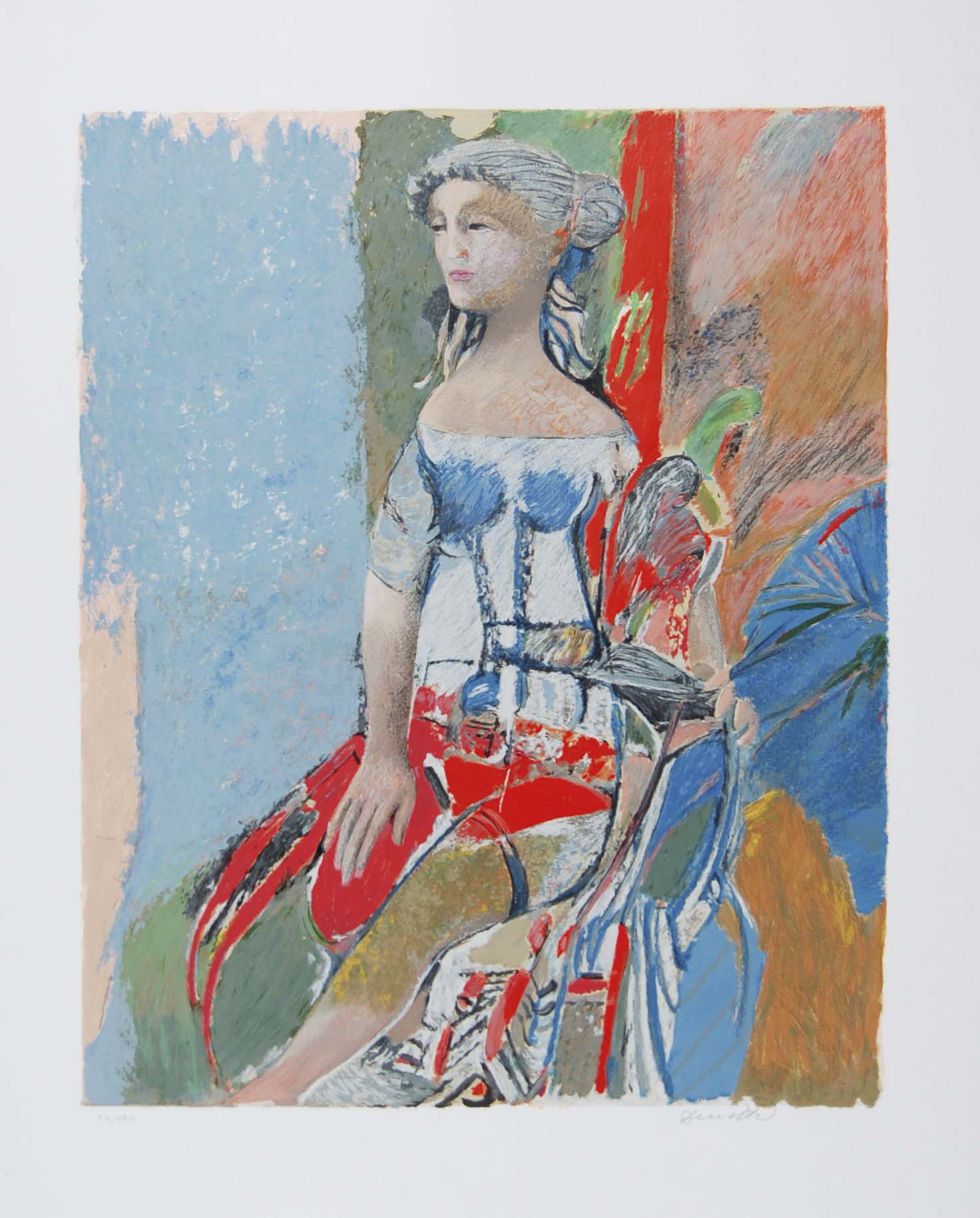 DINETTO LINO Este (Pd) 1927 Figura serigrafia es. 54/120 cm 90x75 firma in basso a destra tiratura in basso a sinistra - Stamperia d'Arte Paoliarte - timbro a secco in basso a sinistra