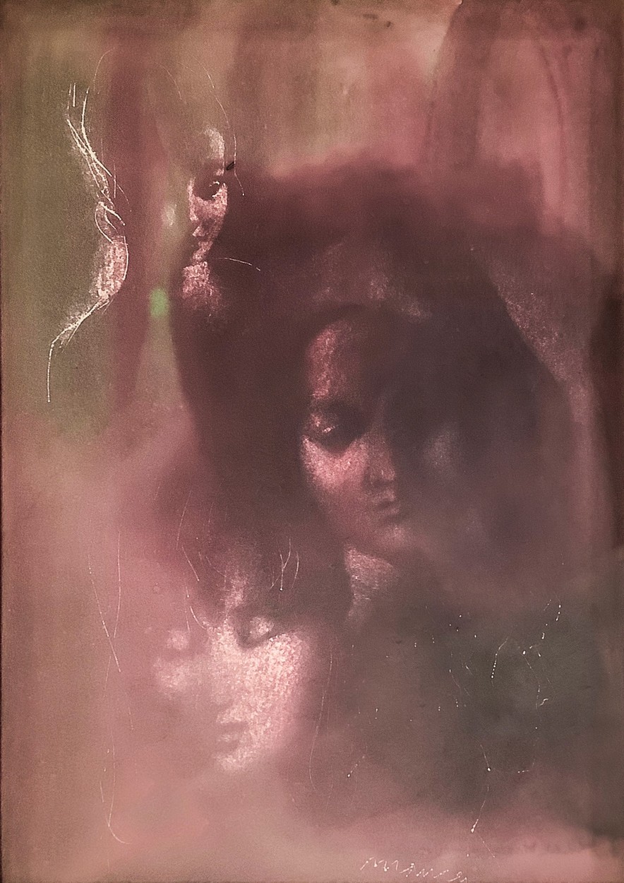 Pietro Antonio Manca (Sorso 1892-Sassari 1975) - Tre donne su sfondo viola b 45x h62 cm, in cornice 52x69 cm. Acquerello su cartoncino