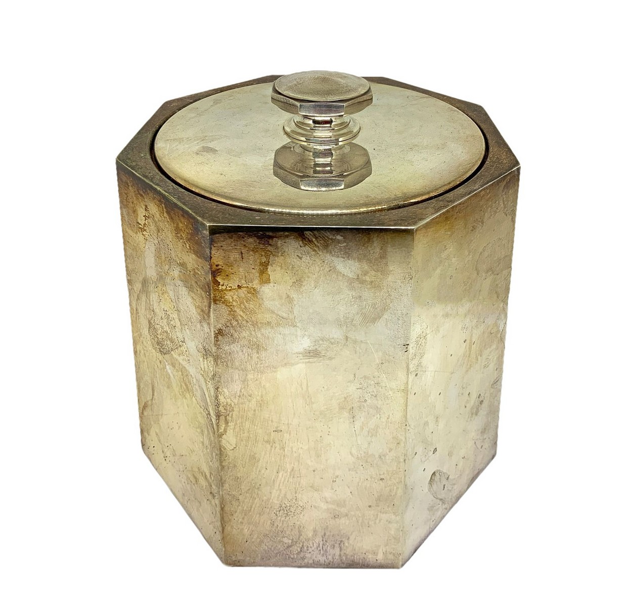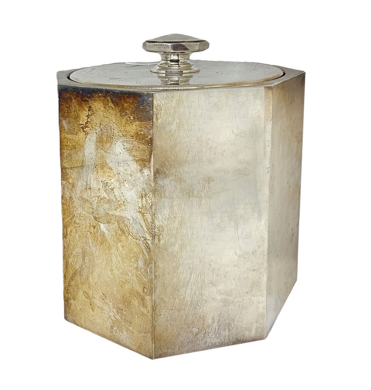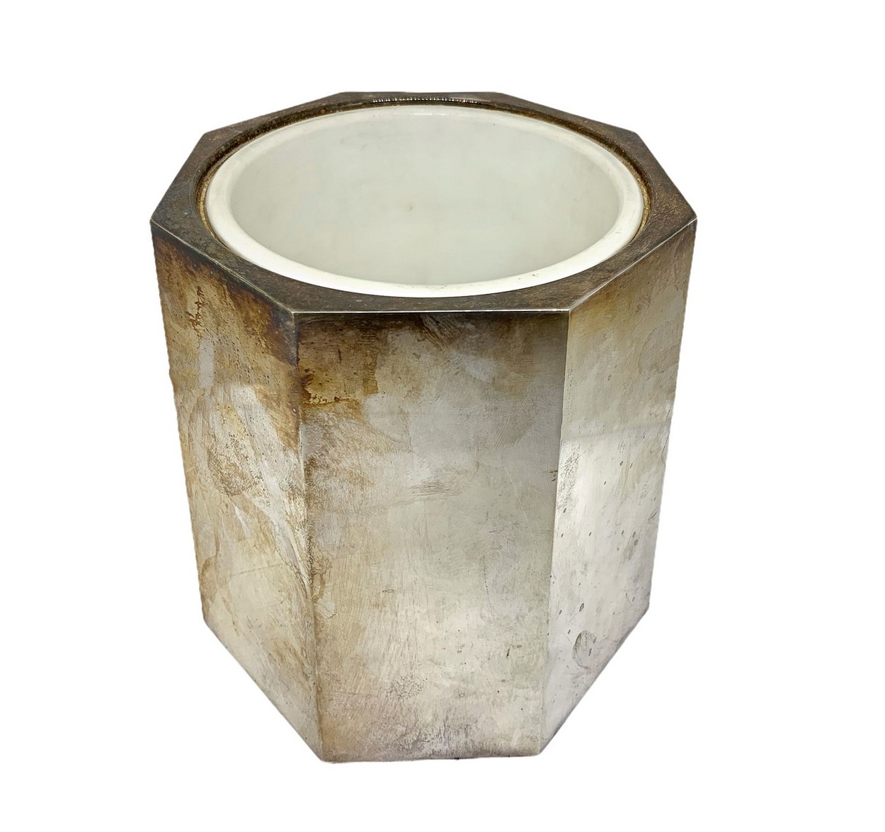 Portaghiaccio in Sheffield H cm 17 con borchie di forma ottagonale in metallo argentatocon borchie di forma ottagonale in metallo argentato
