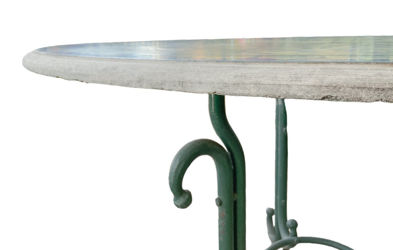 Tavolo rotondo in pietra lavica e n.4 sedie in ferro battuto. , 20th century