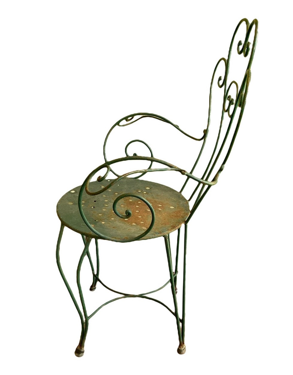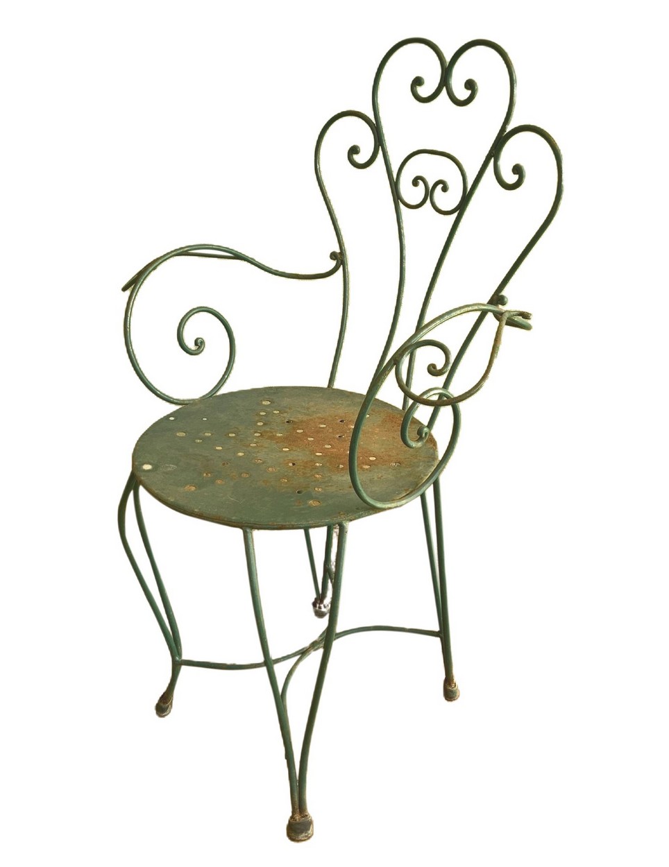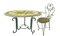 Tavolo rotondo in pietra lavica e N.4 sedie in ferro battuto, 20th century