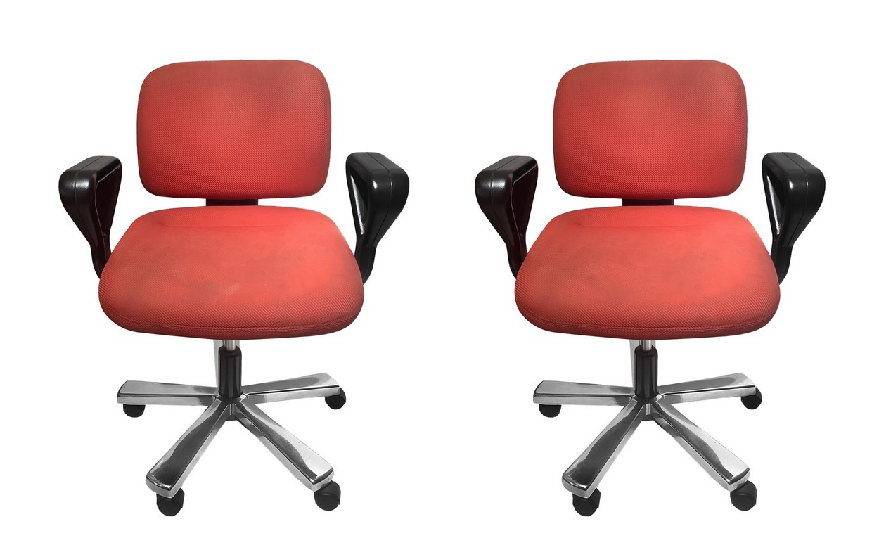 Coppia di poltrone h 80 cm, l 70 cm anni ’80-90 Piede in metallo a cinque razze con ruote