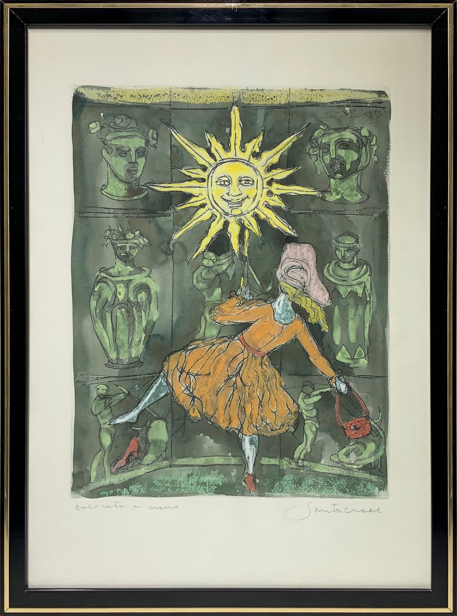 Antonio Santacroce (Rosolini 1945) - Donna con sole 70x50 cm Litografia su carta colorata a mano Firmata in basso a destra Santacroce Questo lotto è soggetto a diritto di seguito