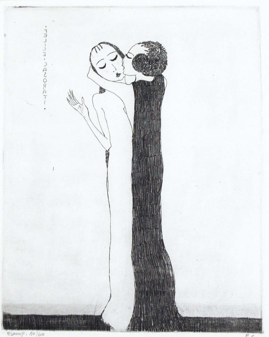 CASORATI FELICE Novara 1886 - Torino 1963 senza titolo acquaforte es. 50/60 cm 29,5x23,5 lastra; 51x34,5 foglio siglato in basso a destra tiratura in basso a sinistra timbro a secco Atelier Casorati in basso a destra - Luigi De Tullio editore stampatore Milano