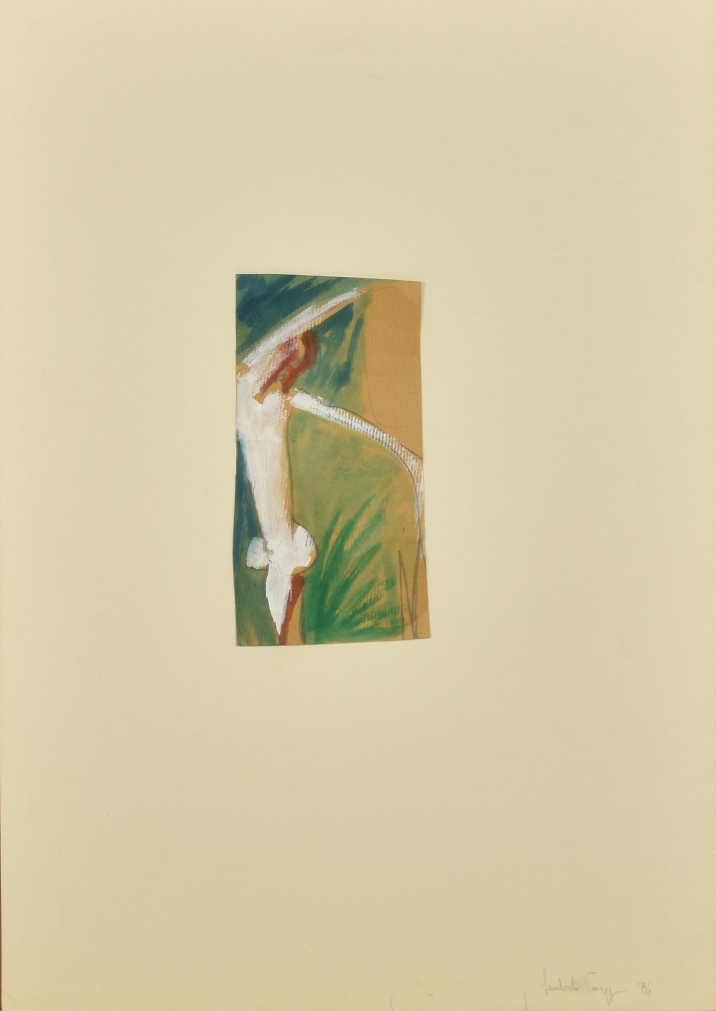 acquerello su carta da pacchi, cm 24,5x13 applicato su cartone, cm 68x48