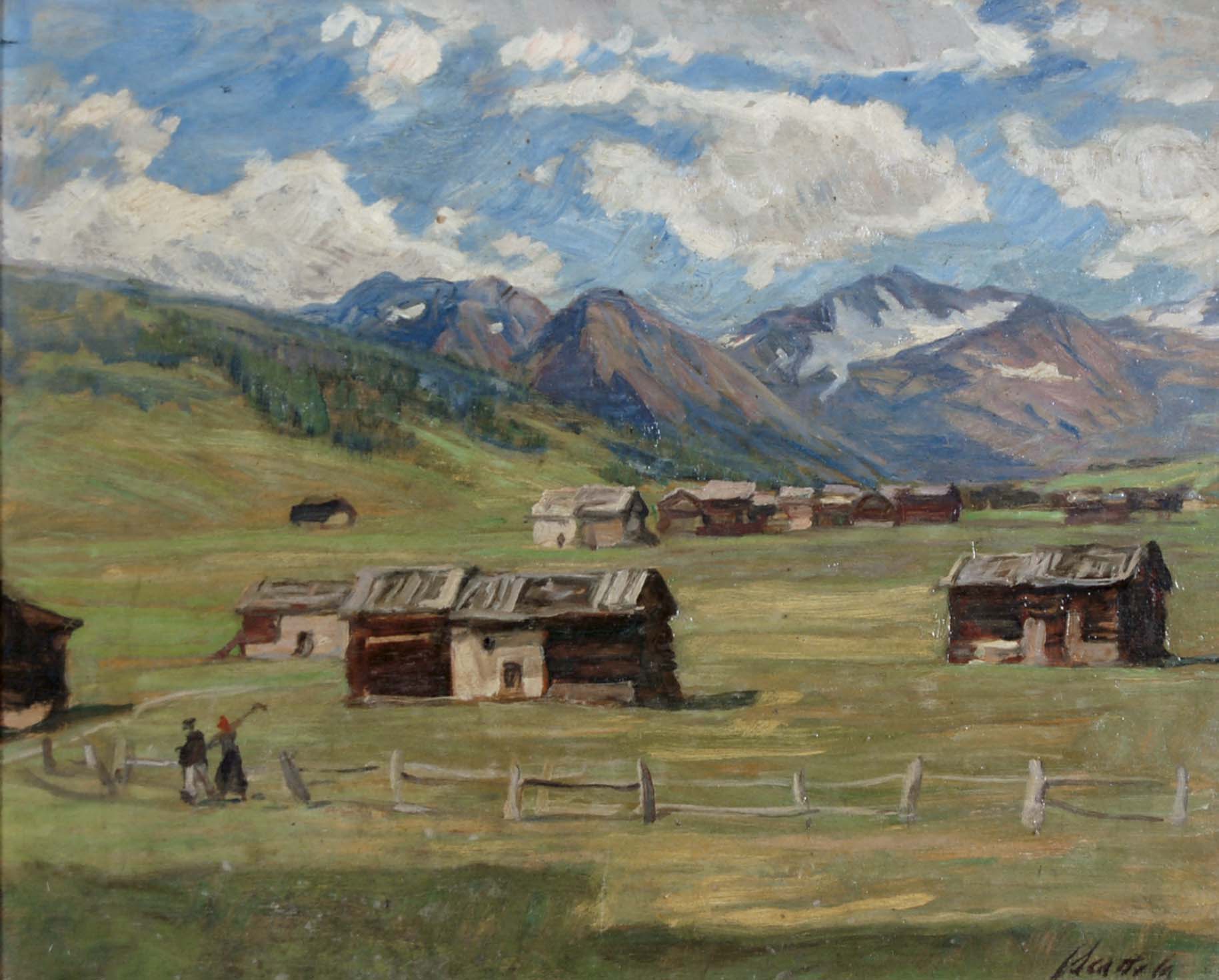 SCATTOLA FERRUCCIO Venezia 1873 - Roma 1950 Ritorno dai campi olio su tavola cm 34,5x42,5 firma in basso a destra