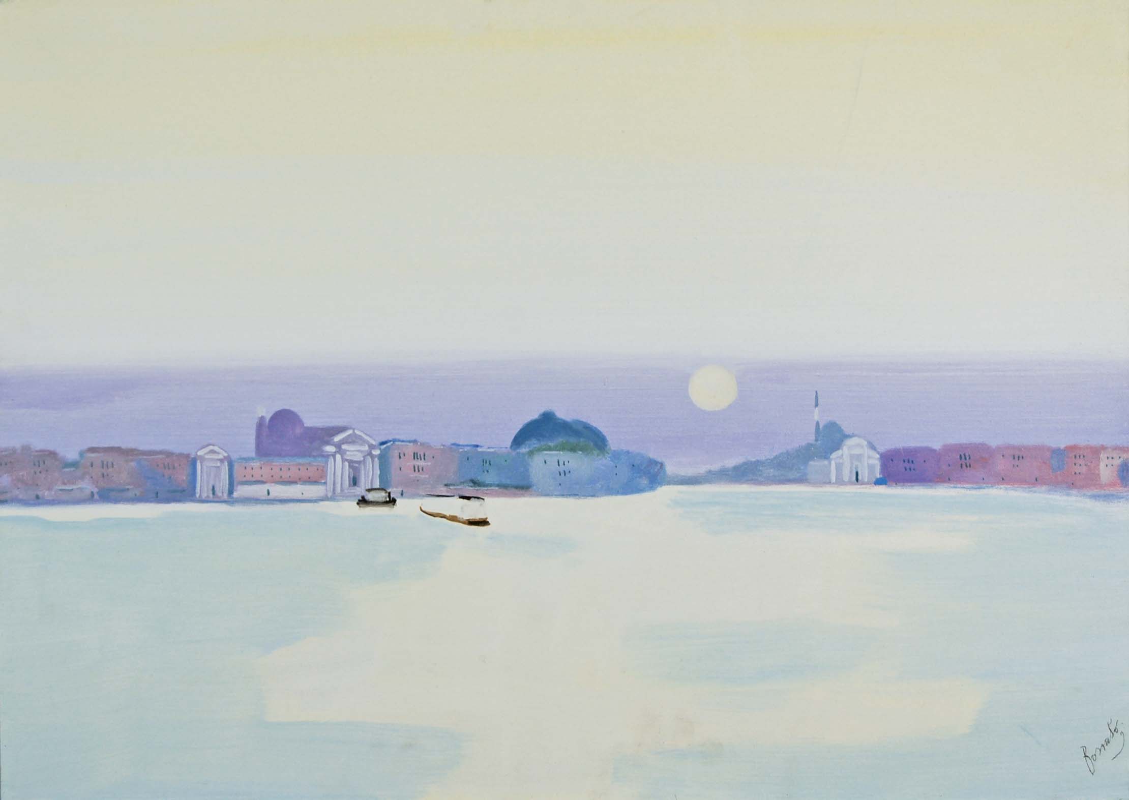 BORSATO RENATO Venezia 1927 Canale Giudecca olio su tela cm 50x70 firma in basso a destra firma e titolo al retro provenienza Studio dell'Autore - timbro al retro