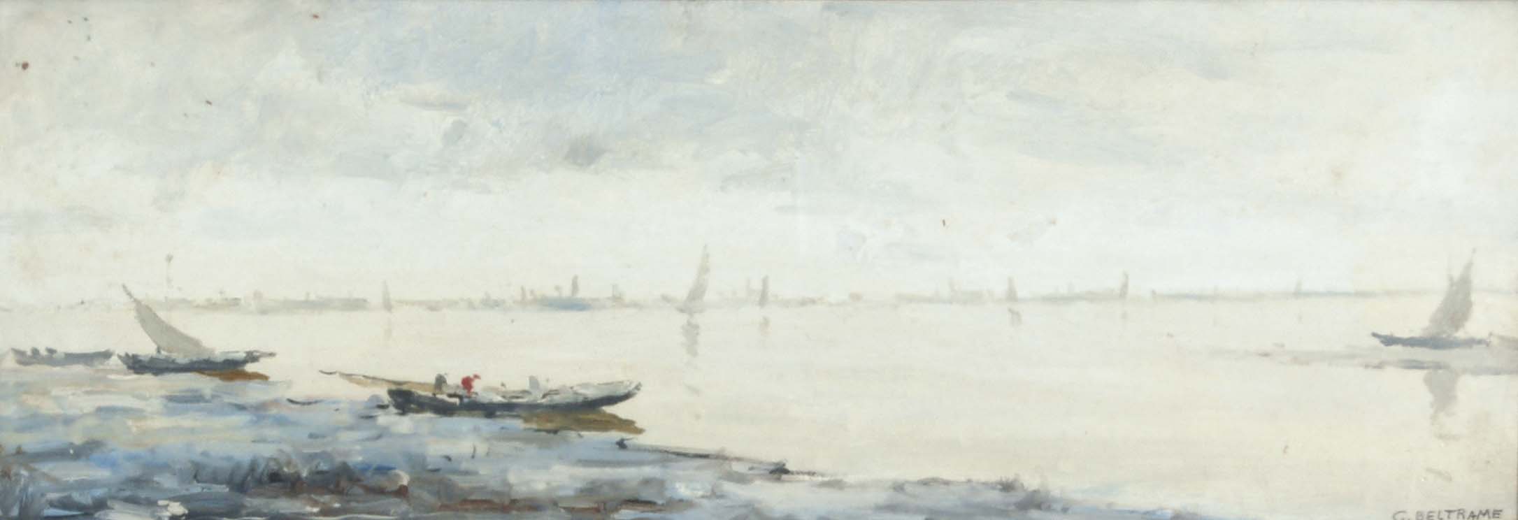 Lotto 55 | BELTRAME G. Secolo XX Paesaggio lagunare olio su masonite cm 18x50 firma in...