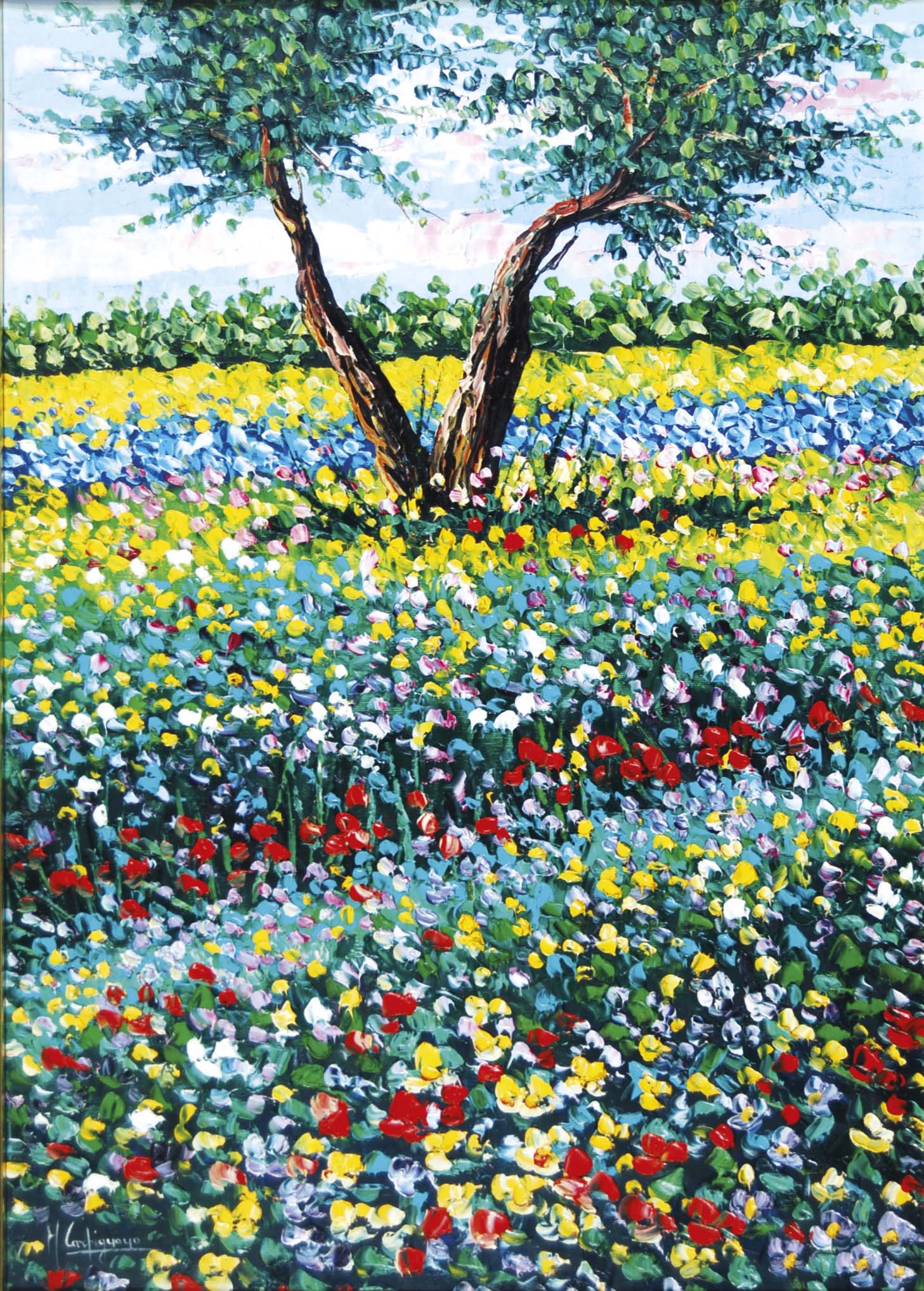 CARPIGNANO MICHELE Palagianello 1958 Colori di campagna 1995 olio su tela cm 70x50 firma in basso a sinistra firma data e titolo al retro