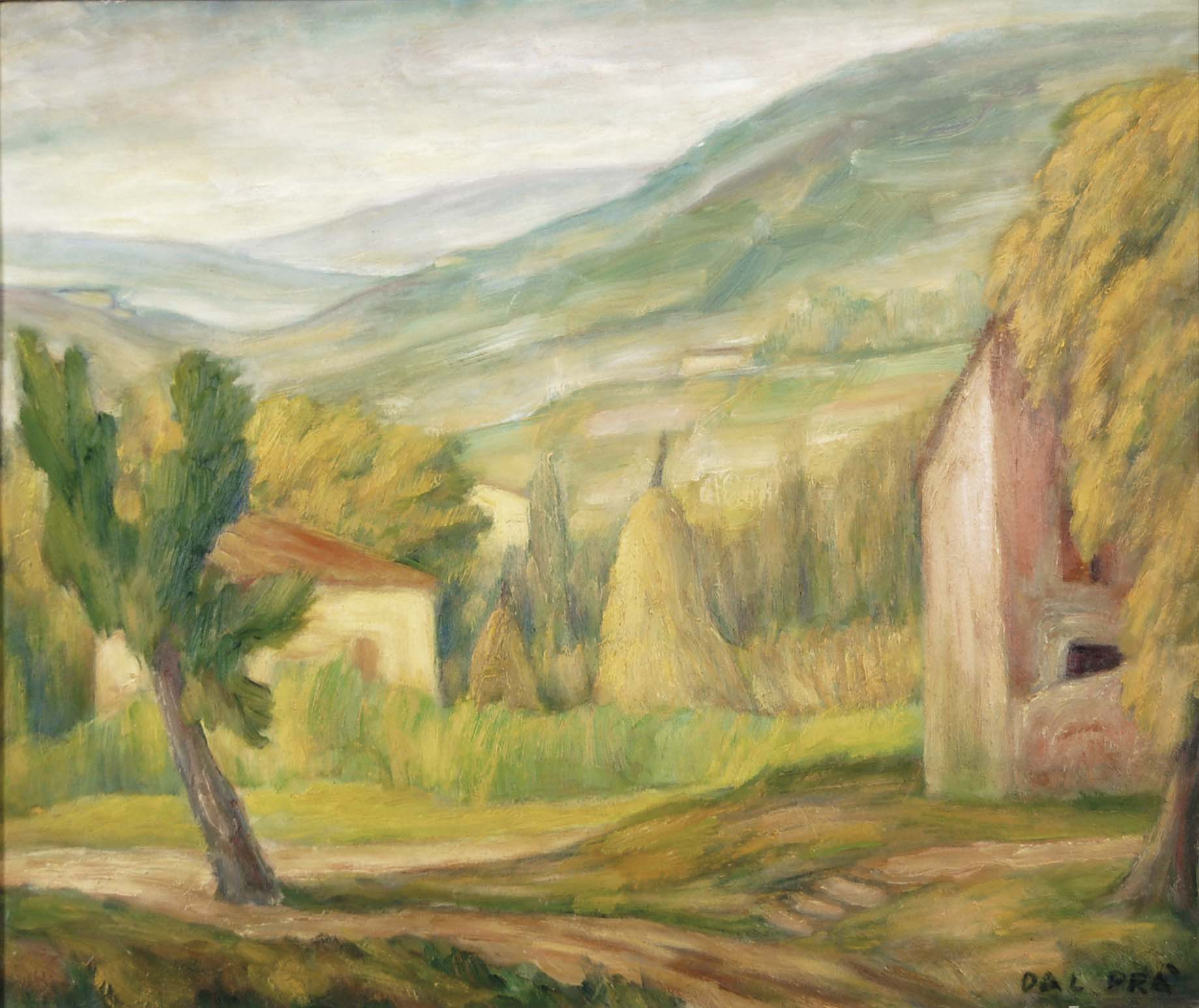 DAL PRA' AMLETO Padova 1893 - 1965 Colli Euganei olio su masonite cm 50x60 firma in basso a destra