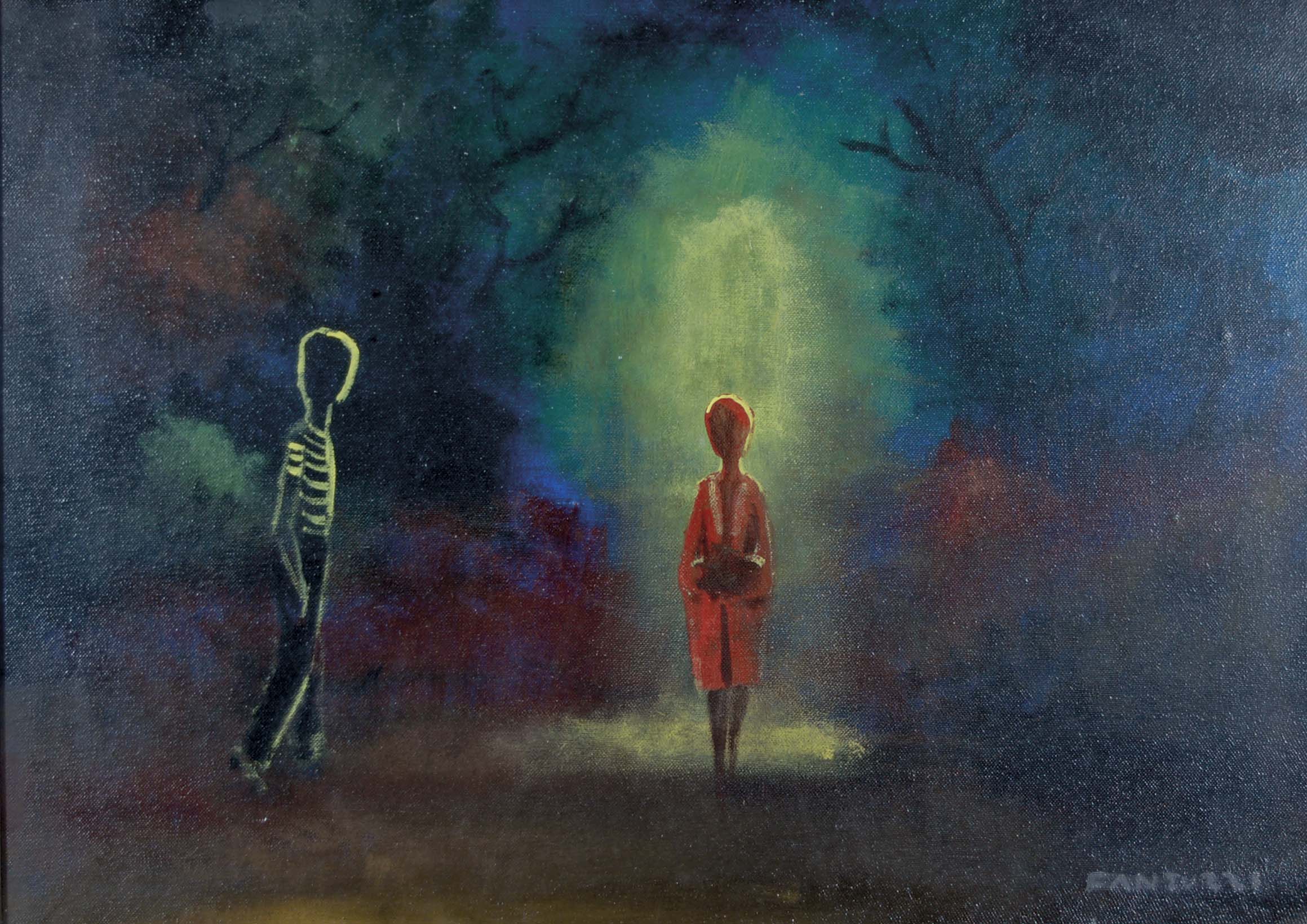 FANTUZZI ELIANO Verona 1909 - 1987 Figure olio su tela cm 50x70 firma in basso a destra e al retro autentica dell'Autore su certificato di autenticità provenienza già collezione Francesco Queirolo