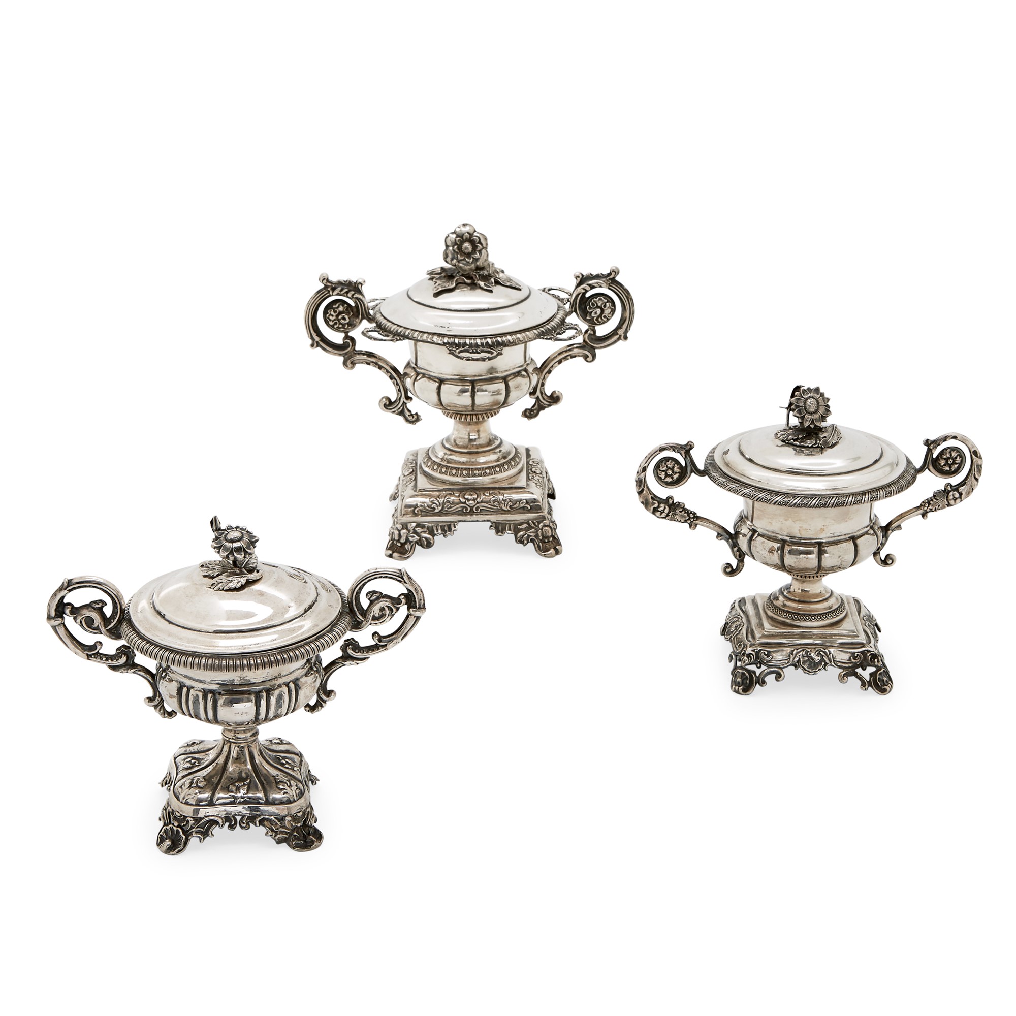 Lotto di tre zuccheriere in argento, Italia 1837-1868