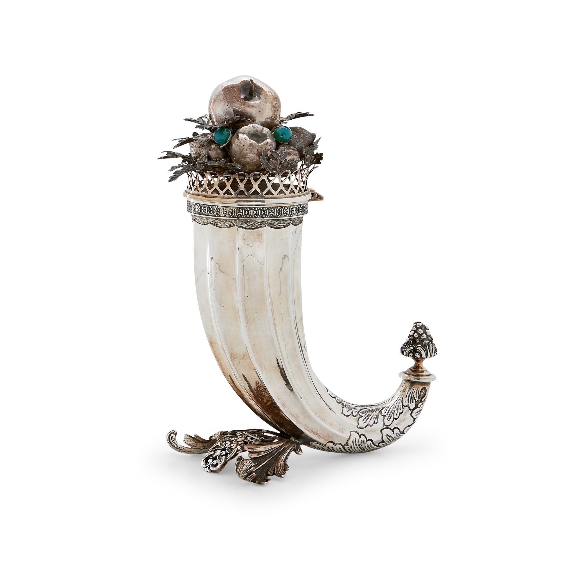 base a motivo fogliaceo e coperchio a cesto di frutta, interno in vermeil.