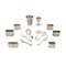 composti da sei posate diverse, un bicchiere, un porta uovo e sei porta tovaglioli.