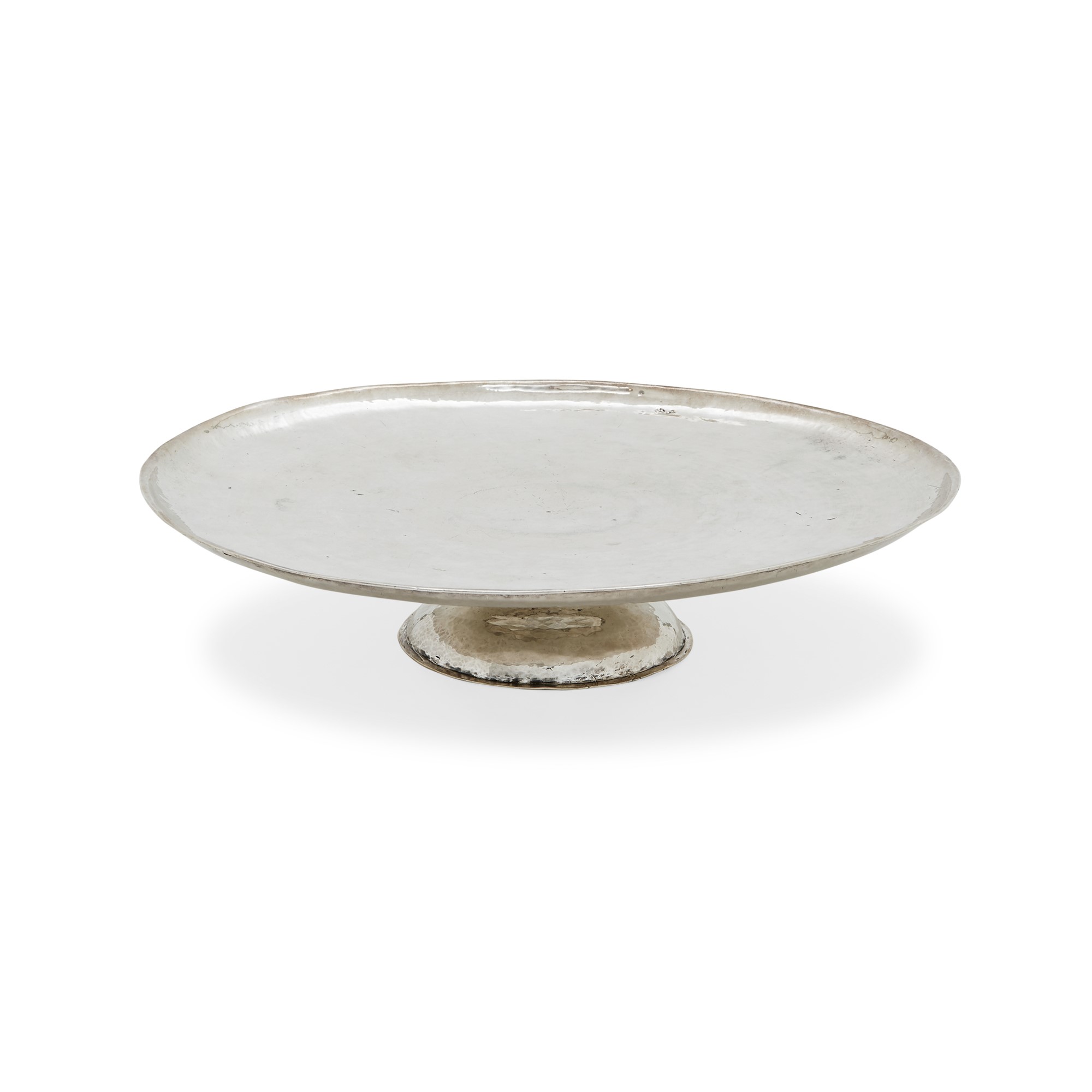base tronco-conica a sezione circolare martellata, piatto tondo con bordo a scalino.
