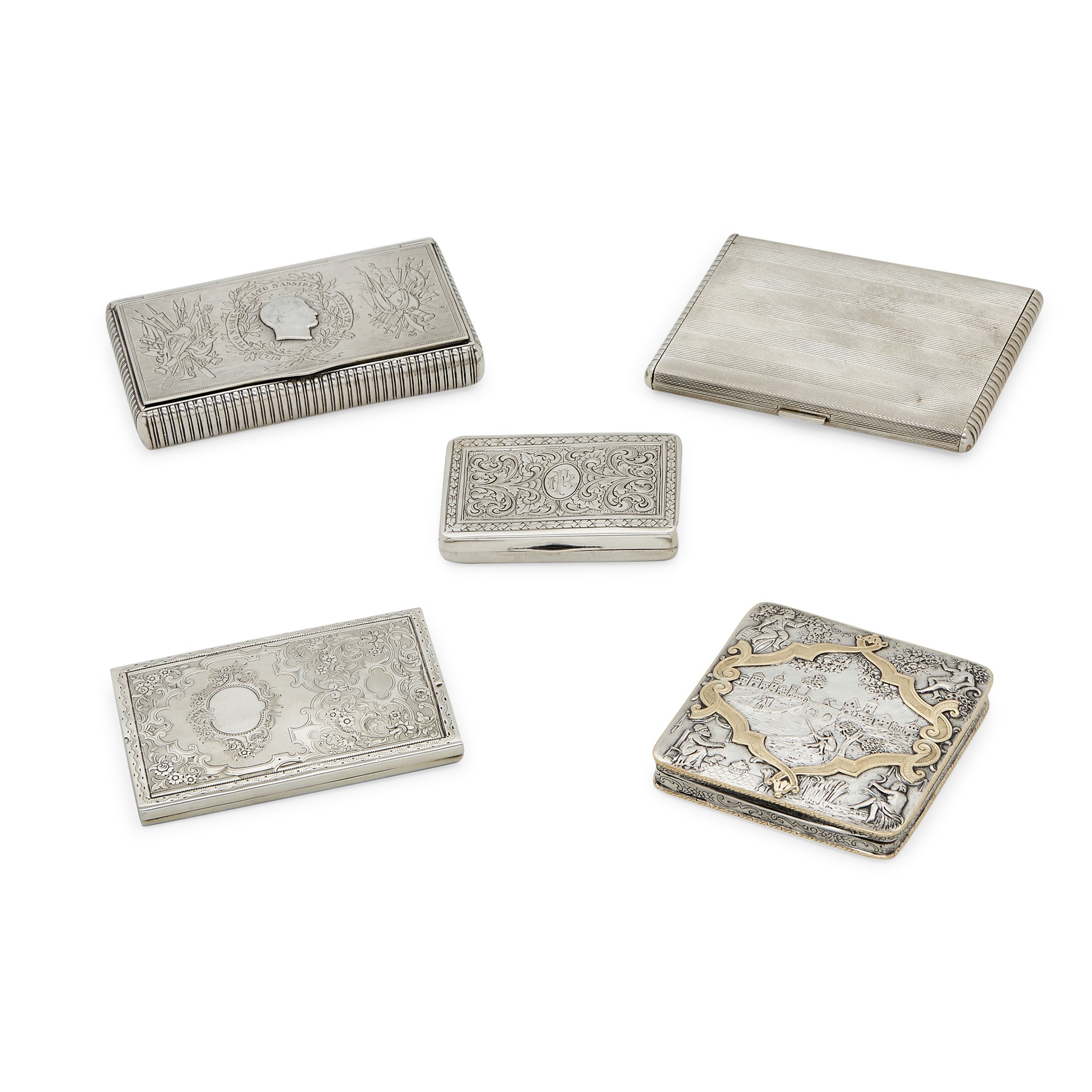 Quattro scatole porta sigarette e un'agendina in argento, Italia XX secolo