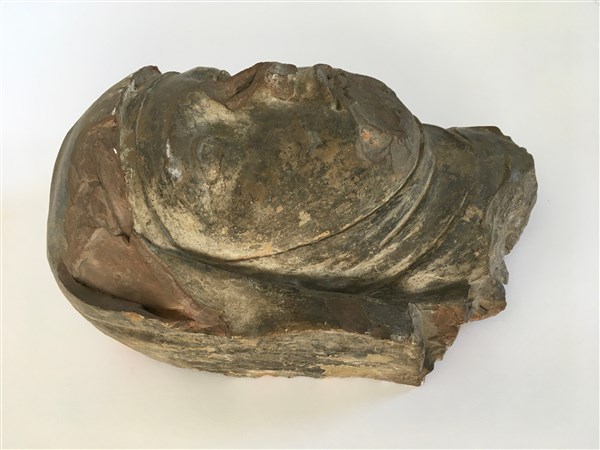 Antica Scultura in terracotta raffigurante volto di religiosa (h cm 32) (difett