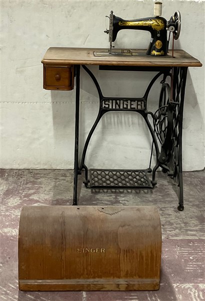 Lotto composto da una macchina per cucire Singer con movimento a pedale (cm 74x