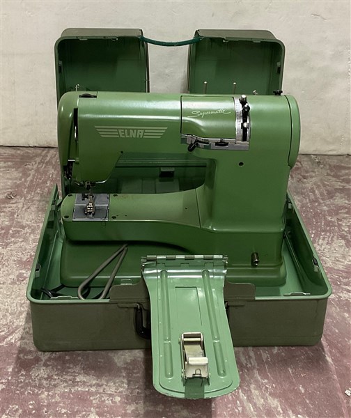 Lotto composto da una macchina per cucire Singer con movimento a pedale (cm 74x100x41), e un macchina per cucire da tavolo marcata Elna "Supermatic" in custodia (difetti)