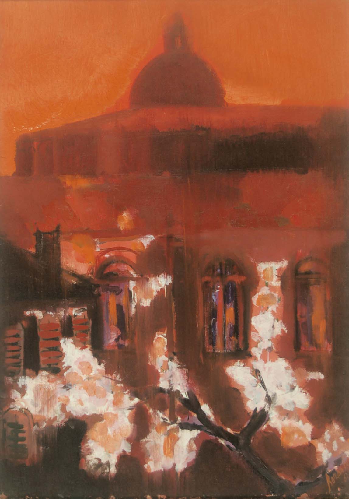 BORSATO RENATO Venezia 1927 La cattedrale (Sicilia) 1963 olio su tela cm 50x35 firma e data in basso a destra firma data e titolo al retro